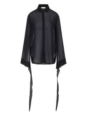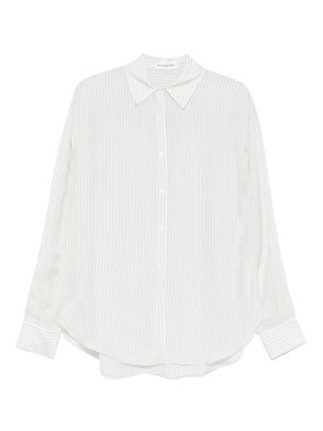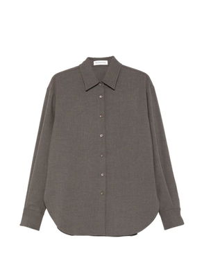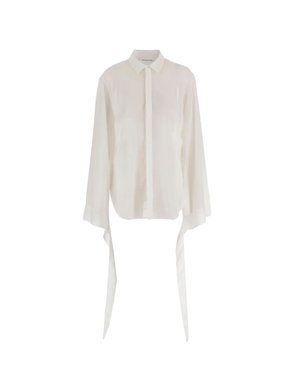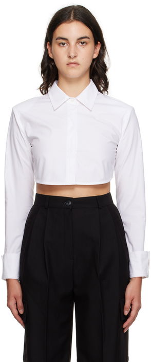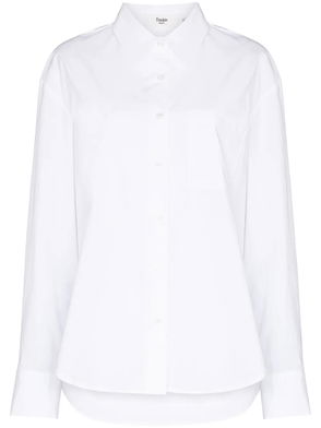 White button fastening long sleeves buttoned cuffs collared.