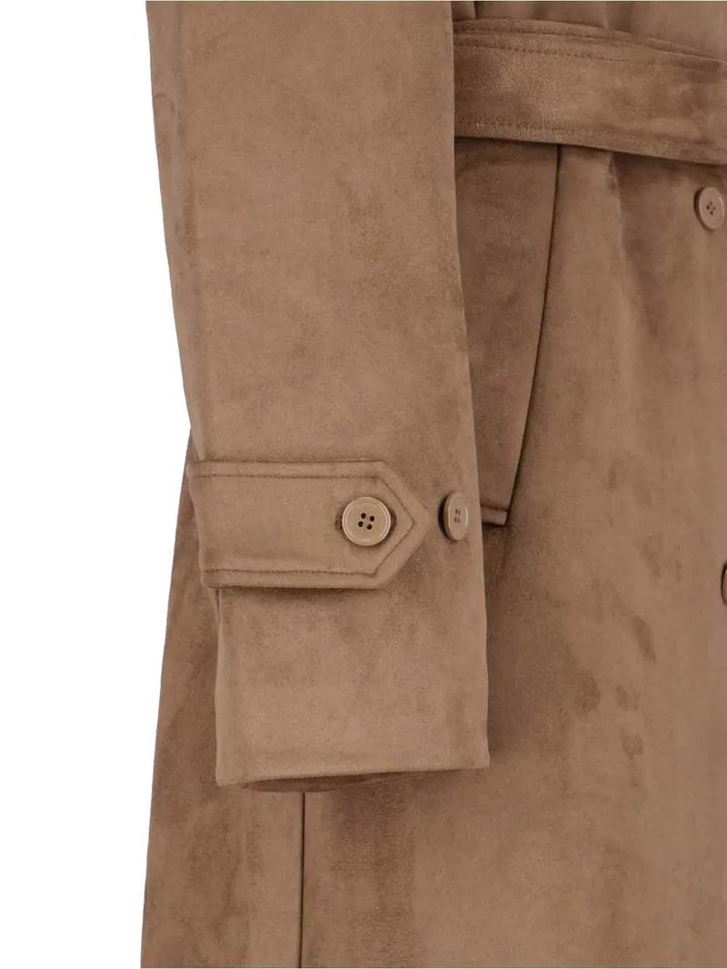 Beige button fastening belted cuffs long sleeves cuff straps.