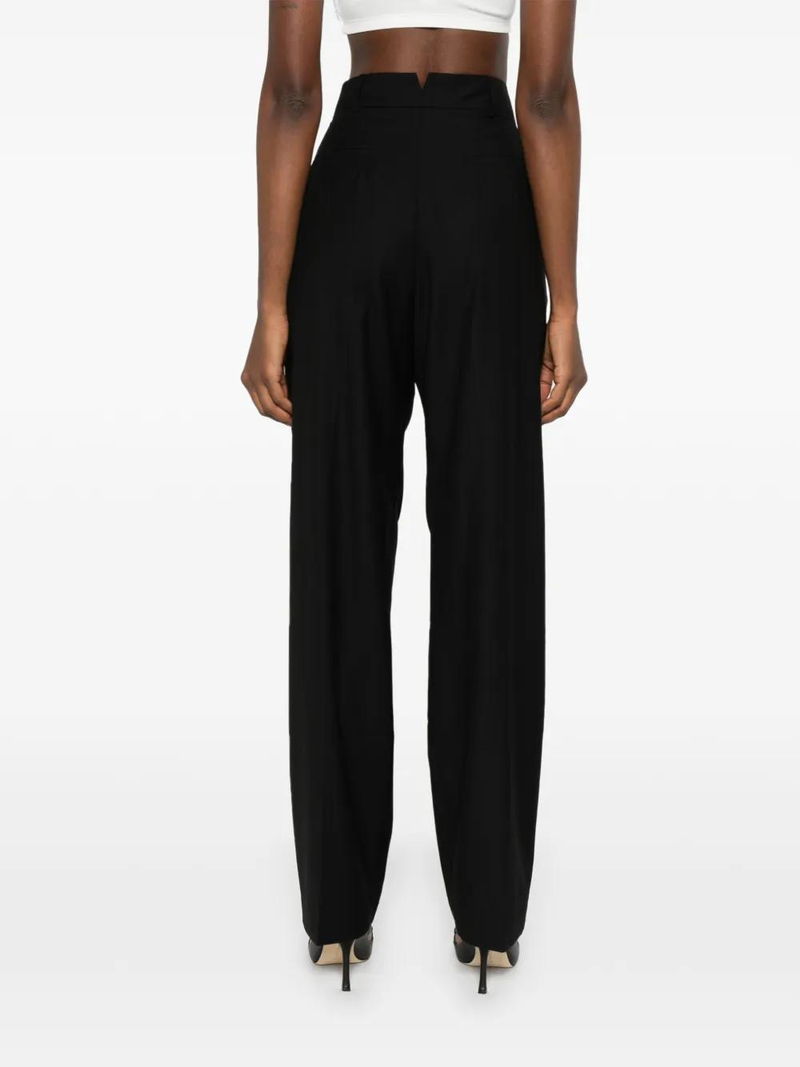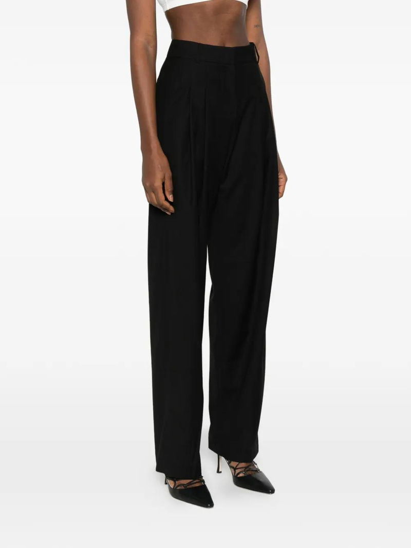 Black pleats concealed closure side seam pockets back welt pocket wide leg.