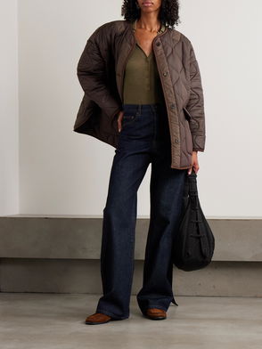 Oversized quilted polyester ripstop jacket. Piping throughout.
