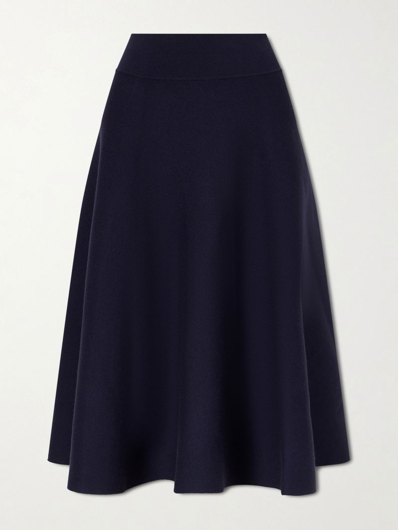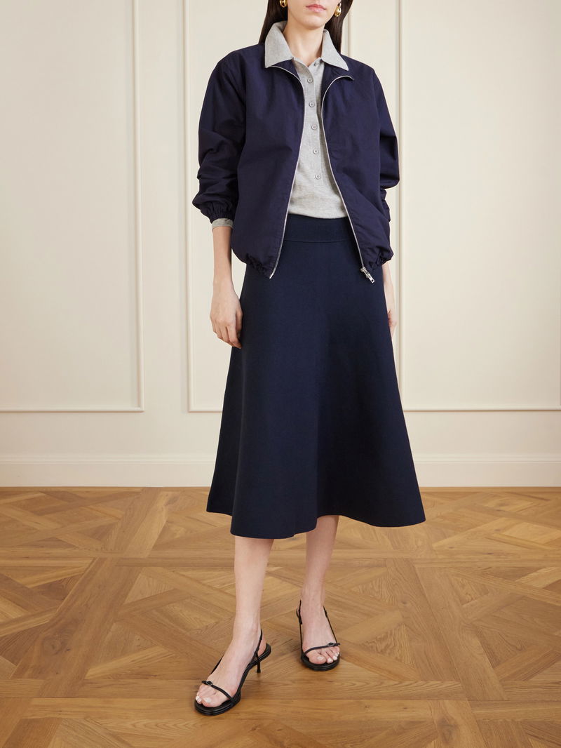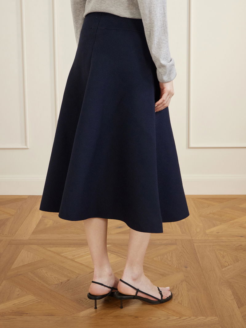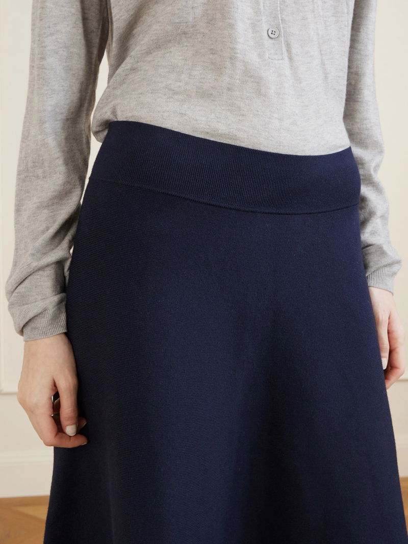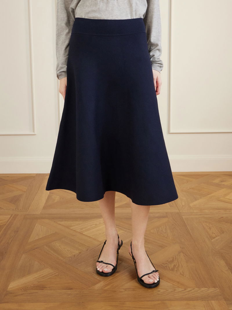 The Frankie Shop’s ‘July’ midi skirt reflects the label’s minimalist sensibility. Knitted for a supple handle, it sits high on the waist before falling to a full, fluid silhouette.