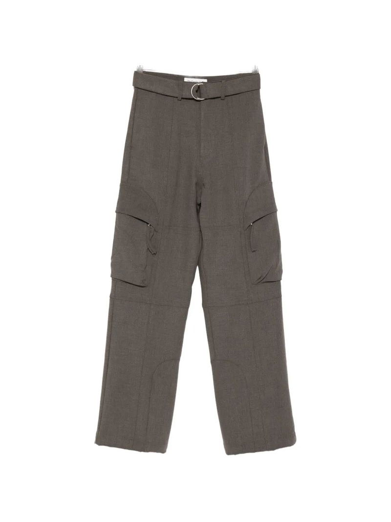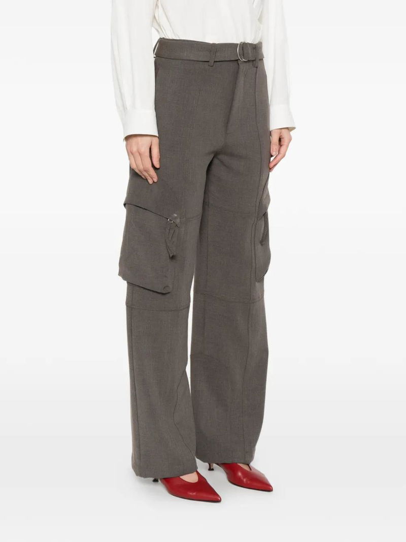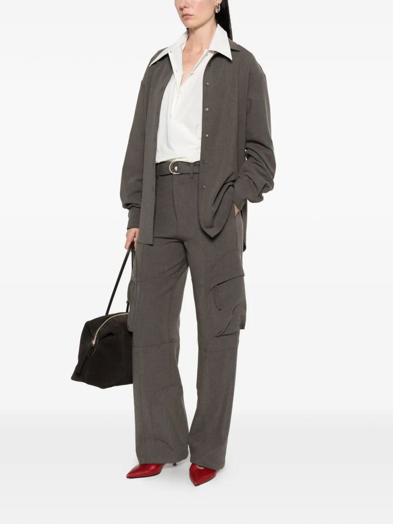 Taupe melange belted silver-tone hardware panelled construction side flap pockets belt loops