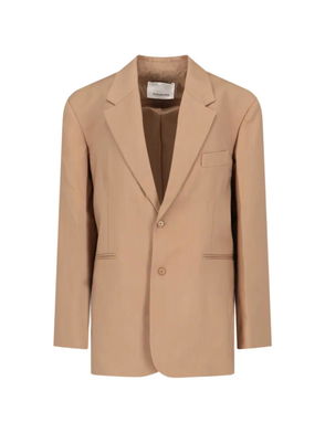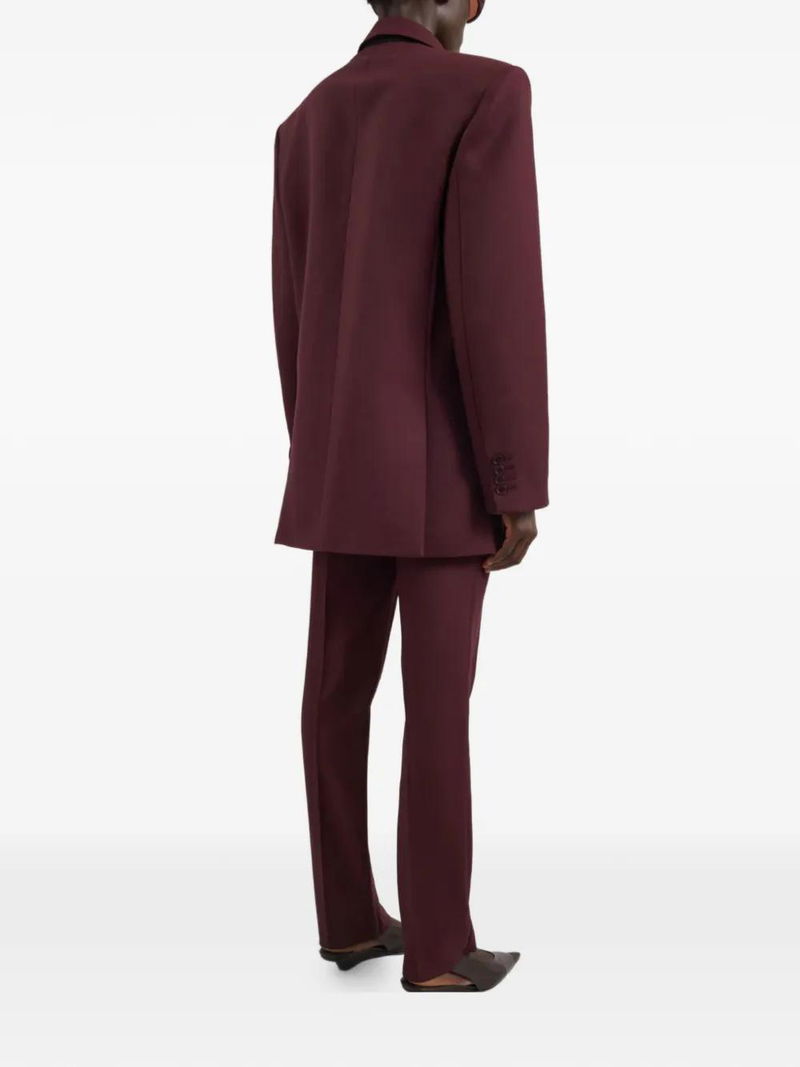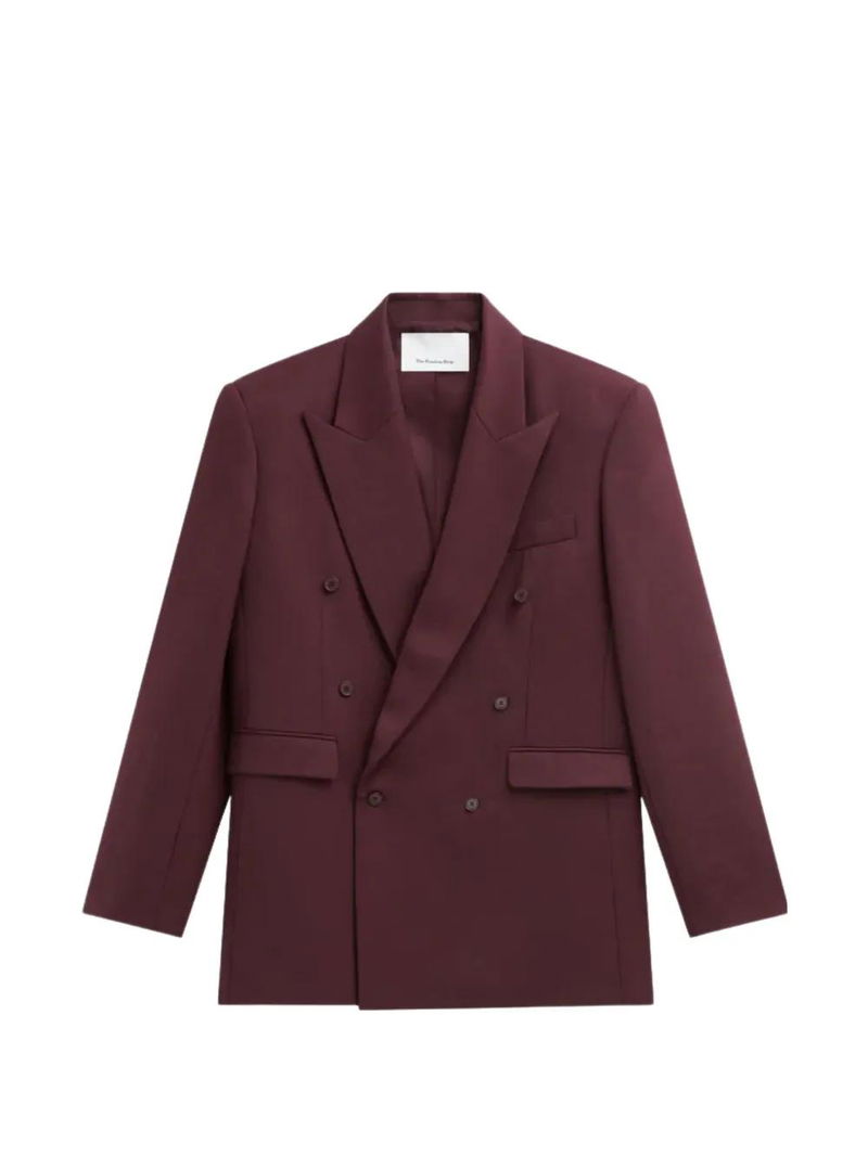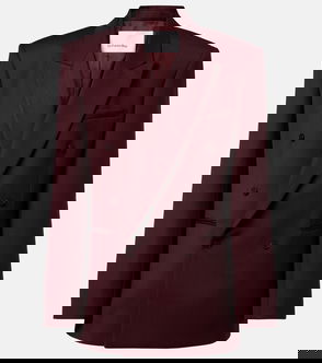 Burgundy, long sleeves, double breasted, button fastening, padded shoulders.
