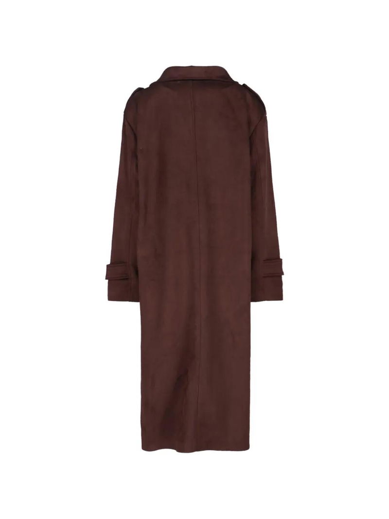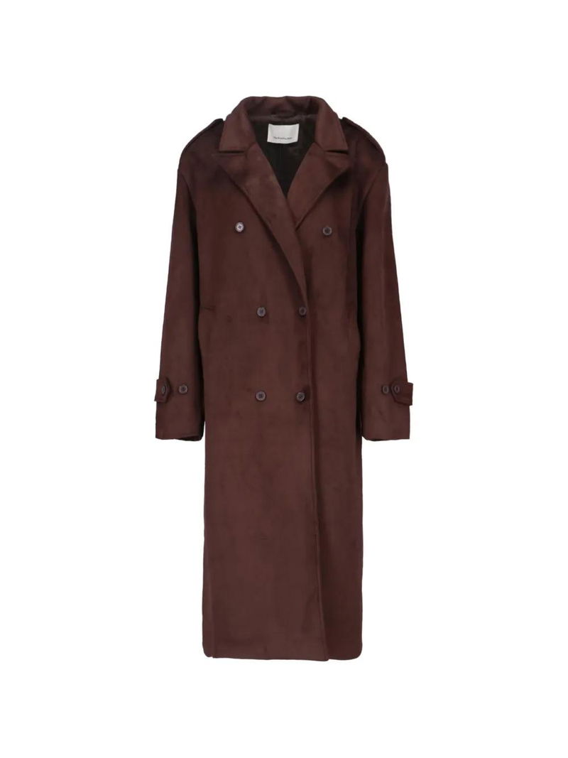 Brown, double-breasted, button fastening, buttoned, cuff shoulder epaulettes.