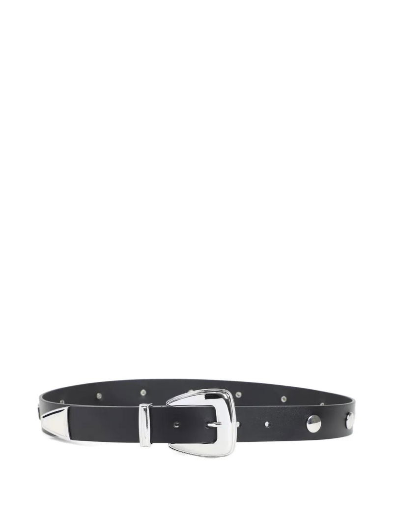 black silver-tone buckle round studs punched holes