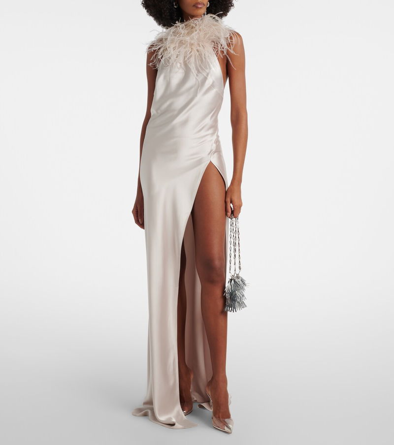 Jazzy Feather-trimmed Satin Gown