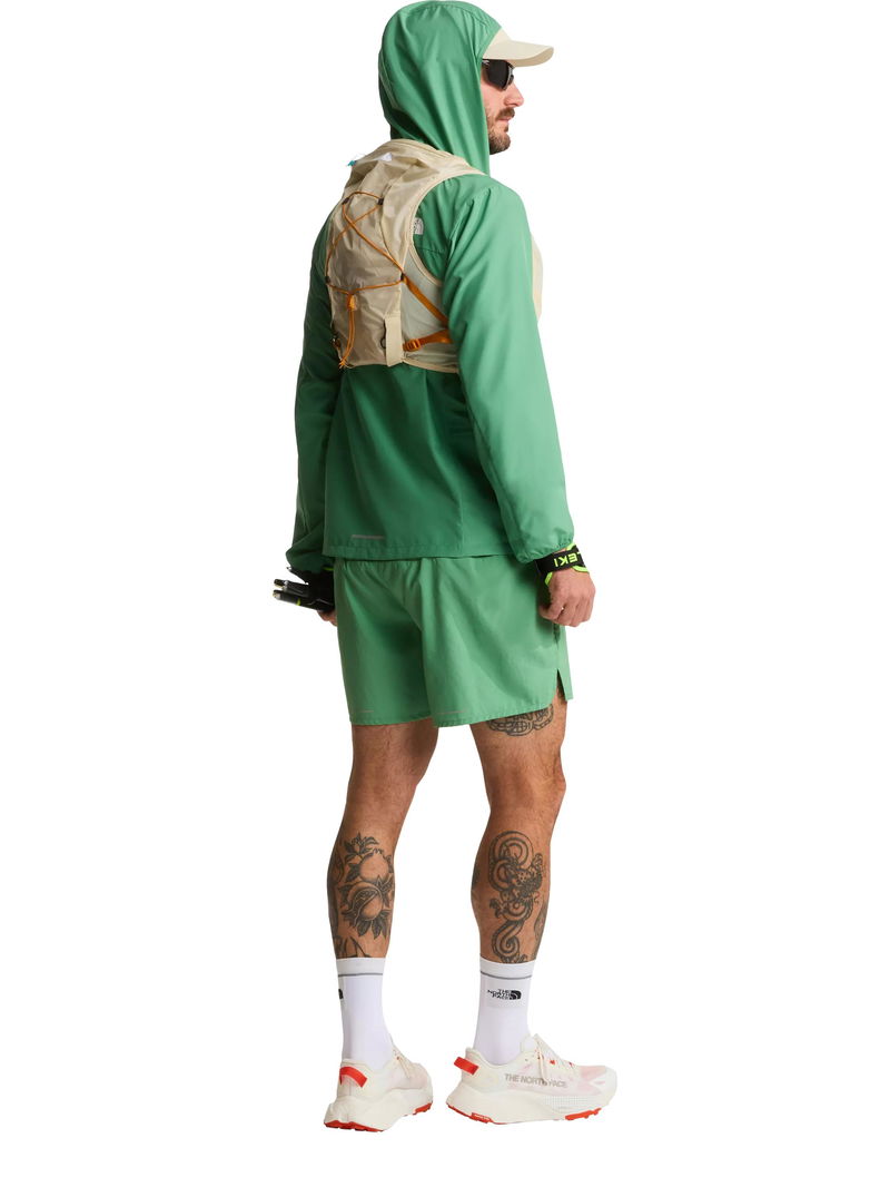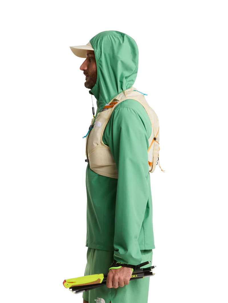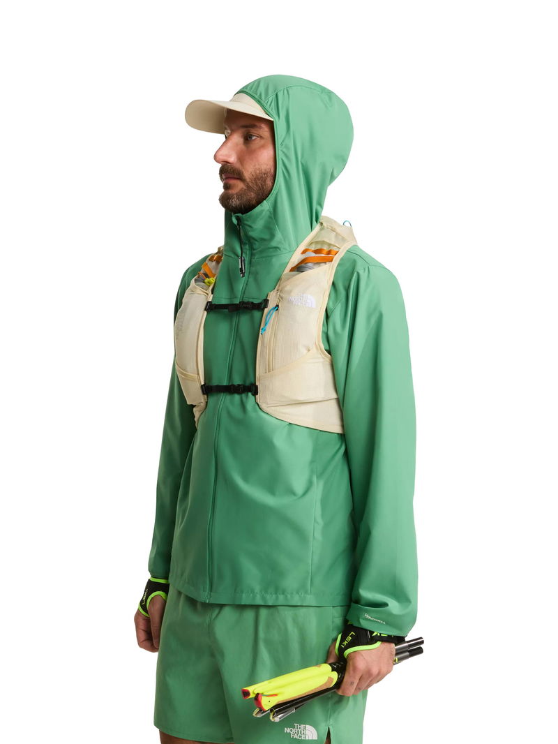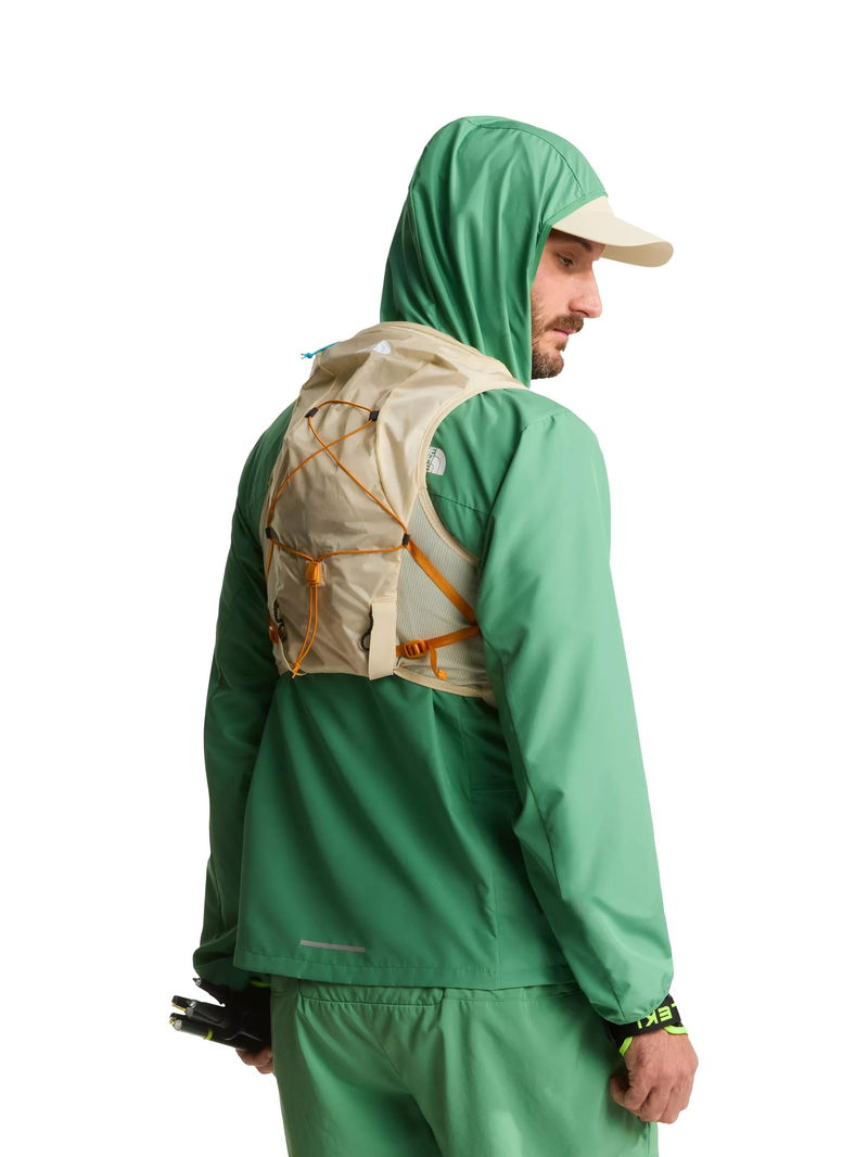 The Sunriser Run Vest 8 is one-part vest, one-part backpack. The 8-litre pack is designed to hold everything you need for a long day on the trail, while the bungee system can hold extra snacks, a water filter or an extra layer you can pull on when the temperature drops. There are five pockets in total consisting of two snack pockets, two water bottle pockets and a secure-zip phone pocket. And if that wasn't enough space, there's a trekking-pole carry system on the rear of the backpack for steep uphill sections and hilly terrain. Side compression provides a custom fit for your torso and minimises bouncing when you're running. Plus, with two 500-ml soft flasks included and a 2-litre bladder pocket with internal routing for a hose, you won't be short on hydration.