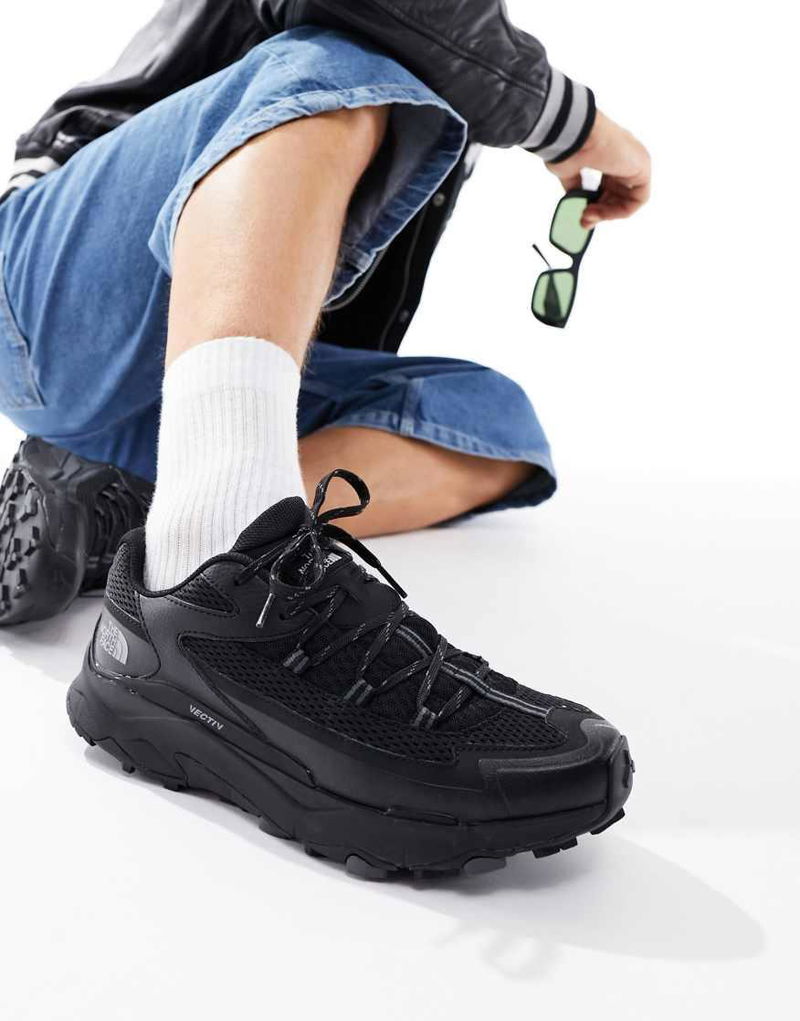 Made for unboxing. Low-profile design. Lace-up fastening. Padded tongue and cuff. Signature The North Face branding. VECTIV midsole provides lightweight cushioning and added propulsion. 3D TPU plate underfoot for multi-directional stability. Durable rubber outsole optimised for hiking. 4mm lugged tread.