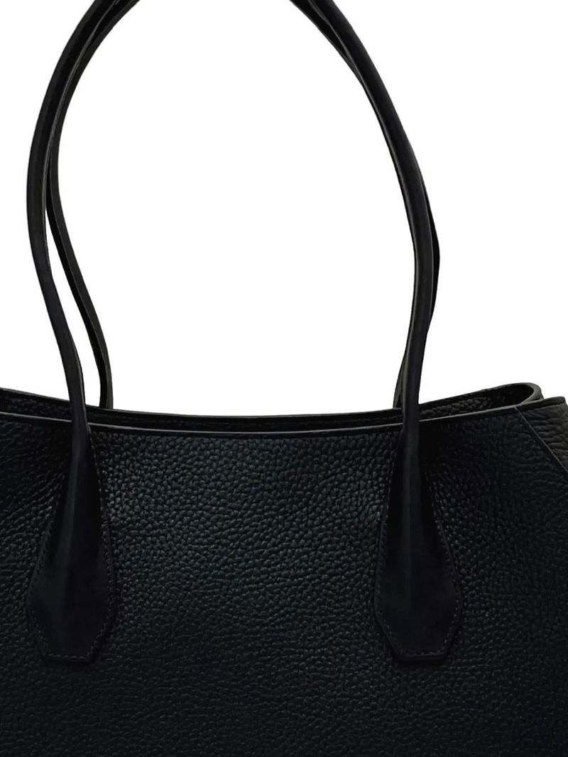 Black, top handles, hook fastening, internal zip-fastening pocket.