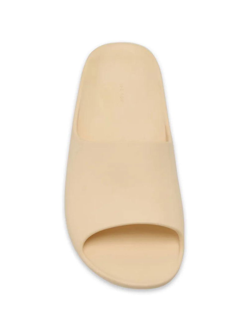 Beige slip-on design open-toe moulded footbed flat-sole.