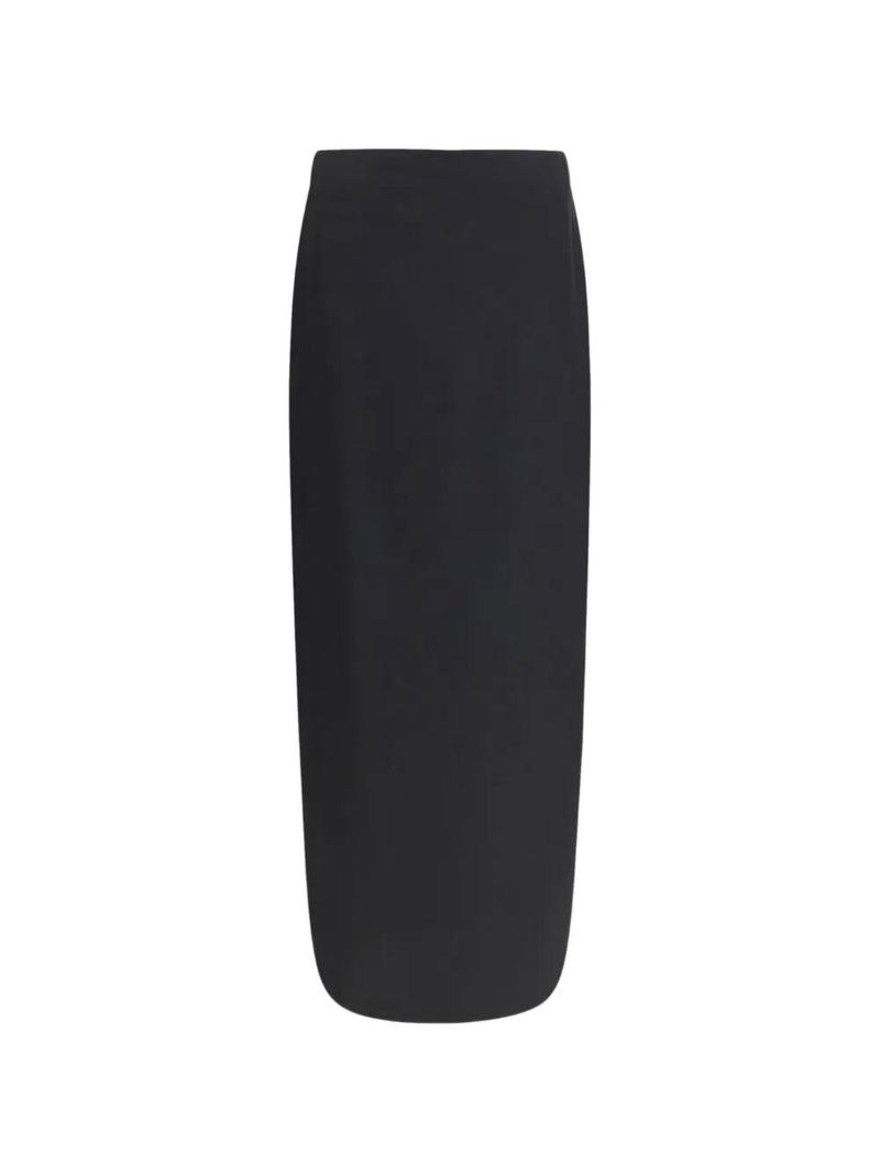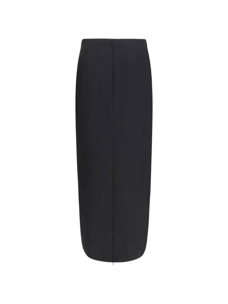 Black wool, rear zip fastening, rear slit.