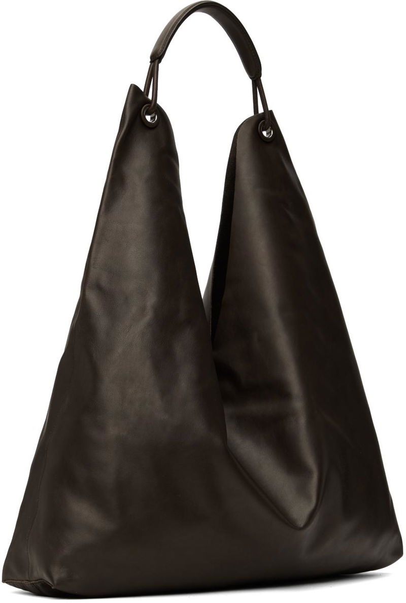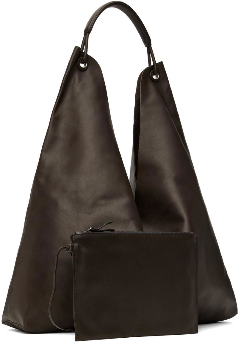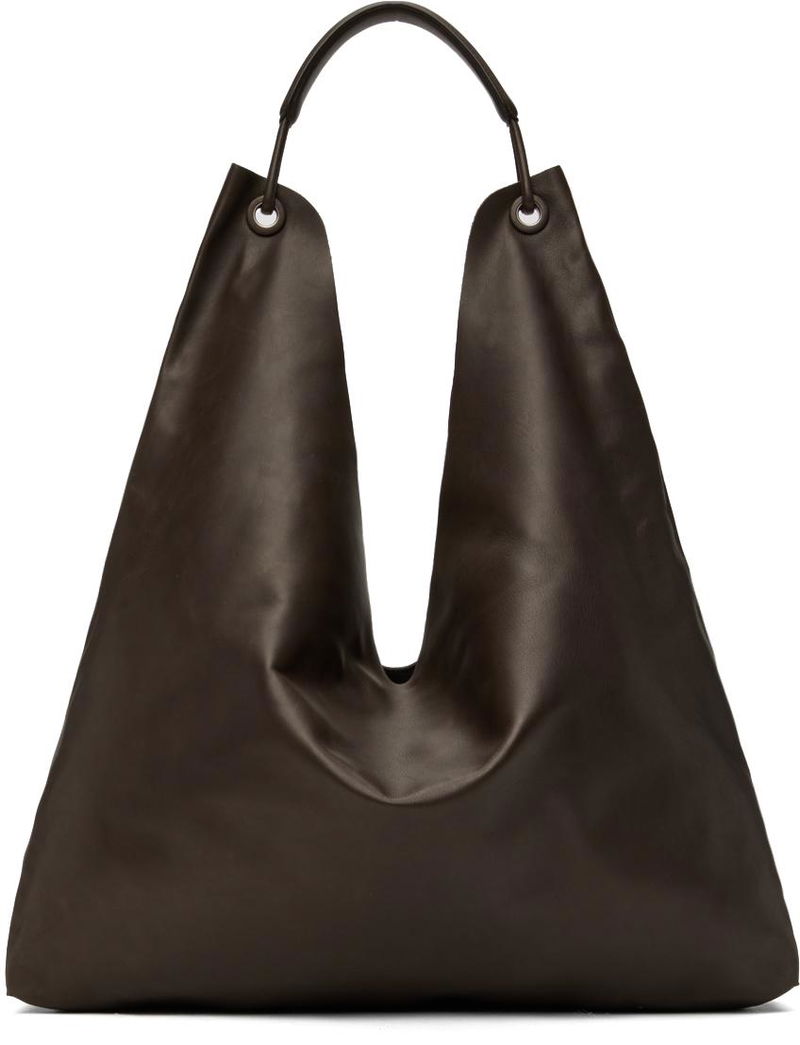 Buffed nappa lambskin tote in brown.· Fixed padded carry handle· Logo embossed at side· Open throat· Detachable zip pouch at interior· Unlined.