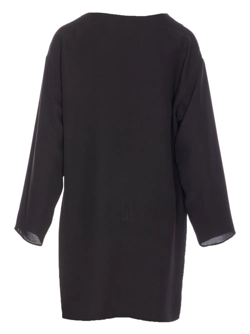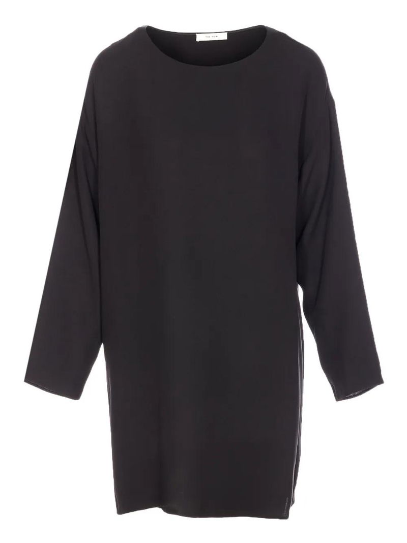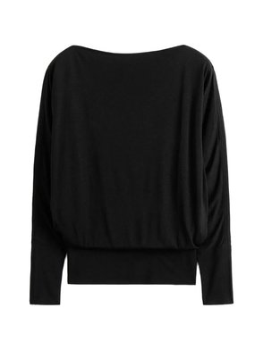 Black, boat neck, long sleeves.