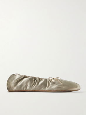 Suede Mary Jane-style ballerina flats in tan.· Pin-buckle strap at vamp· Logo stamp at padded leather footbed· Suede and buffed leather lining· Stacked leather heel· Leather sole with rubber injections· Silver-tone hardware.
