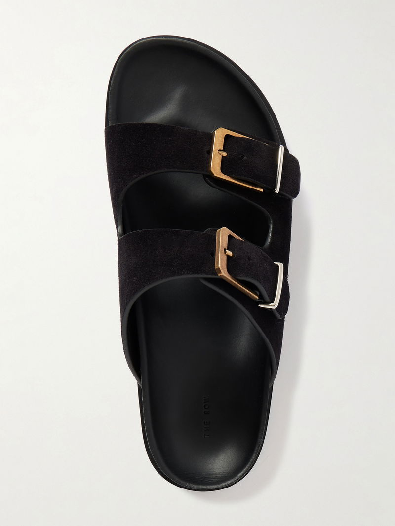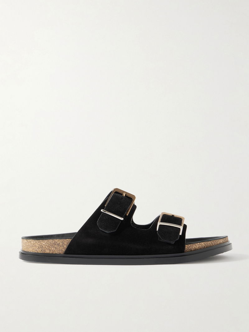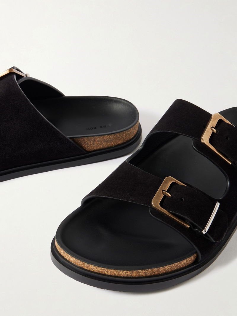 The Row’s slides are effortlessly chic and comfortable. They're made from soft suede and topped with polished buckles. Slip them on with relaxed tailoring.