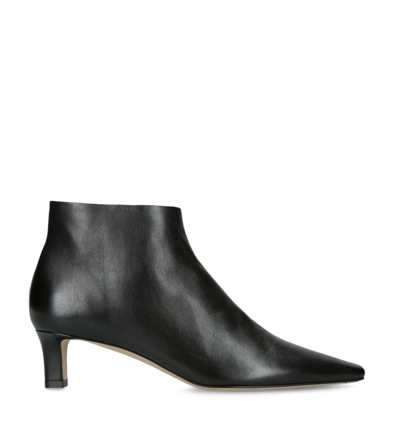 The Row's approach to design pushes the boundaries of minimalism through an unwavering commitment to exacting craftsmanship. The Carla ankle boots beautifully encapsulate that philosophy, thanks to their understated, glossy leather exterior, which juxtaposes the rounded silhouette with the angular square toes.