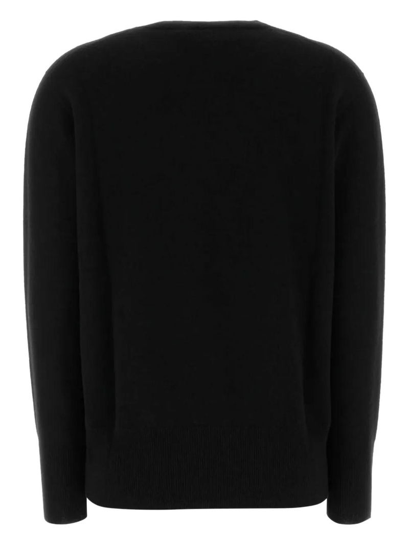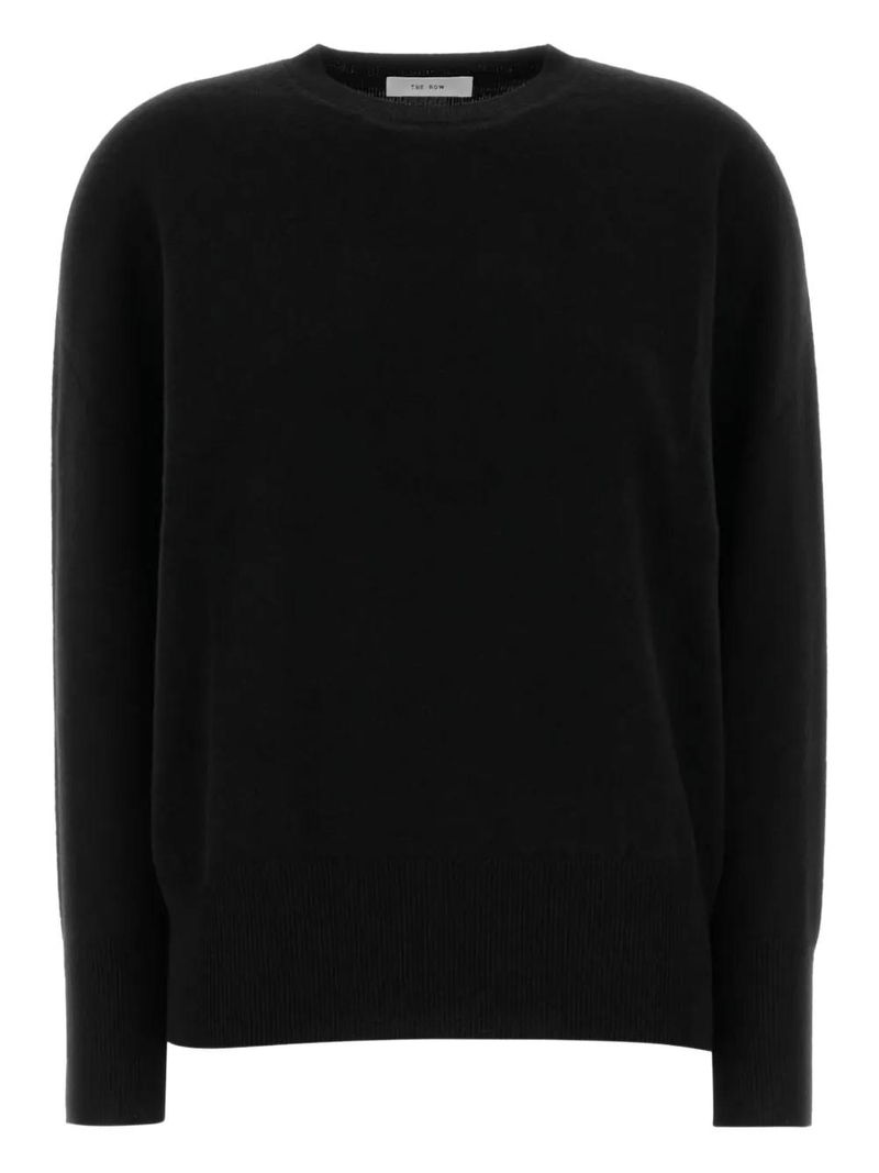 Black, cashmere, crew neck, long sleeves, ribbed cuffs, ribbed hem.