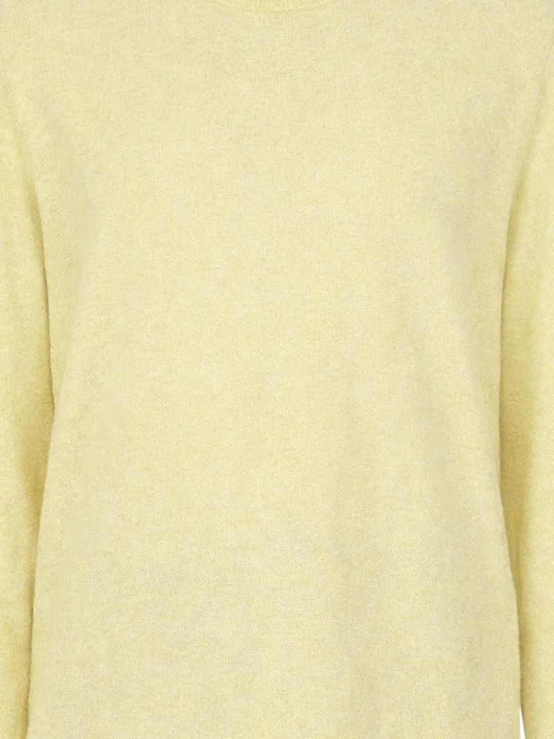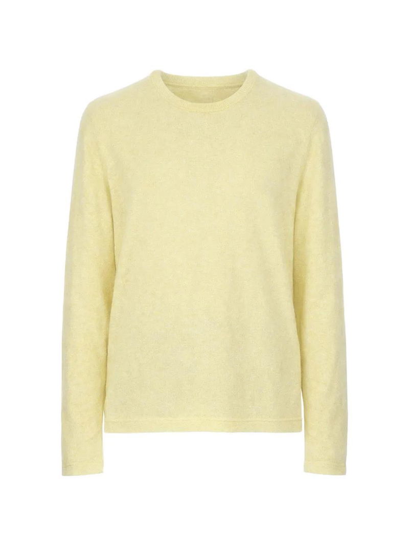 Pale yellow long sleeves round neck cashmere.