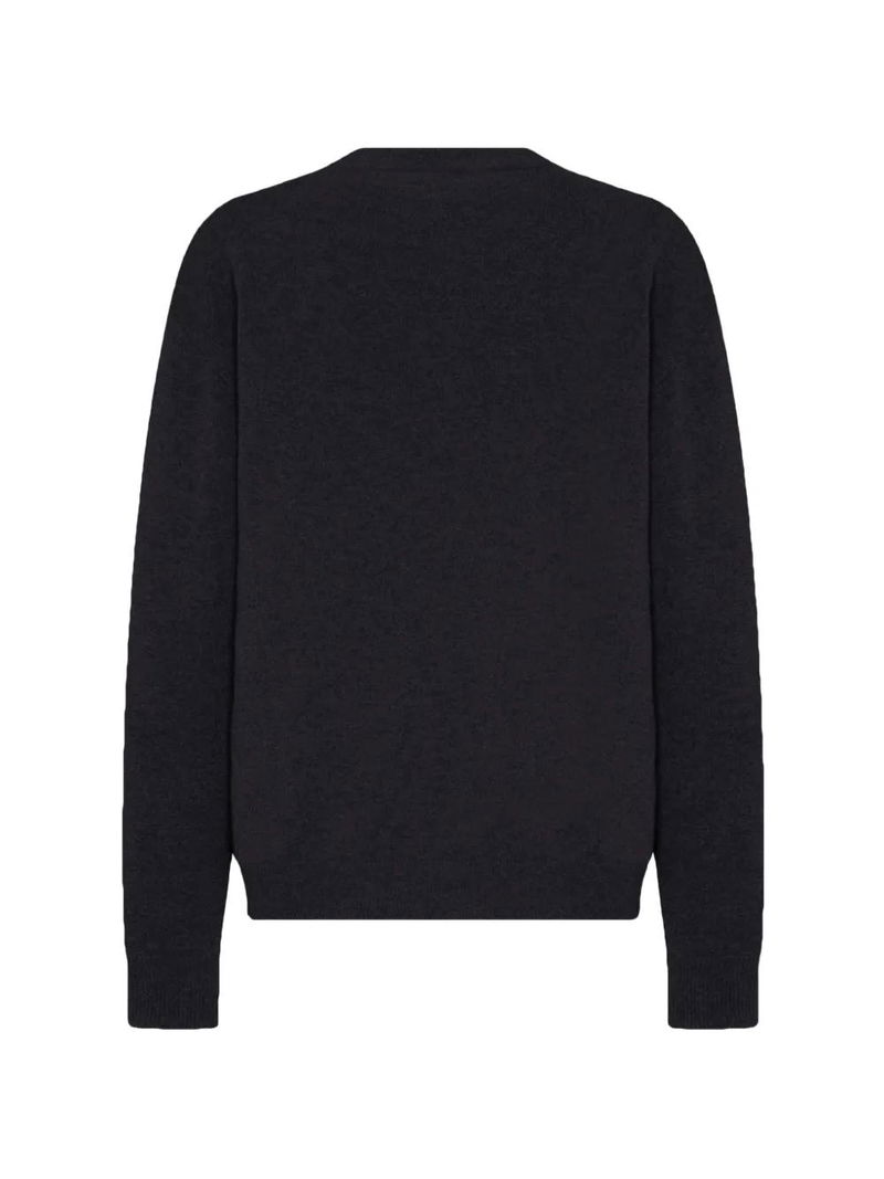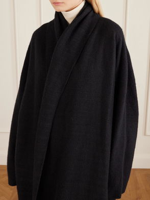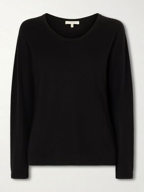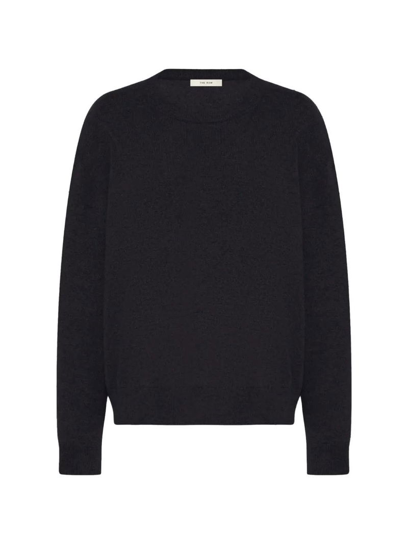 Black, cashmere, round neck, ribbed trims, square fit.