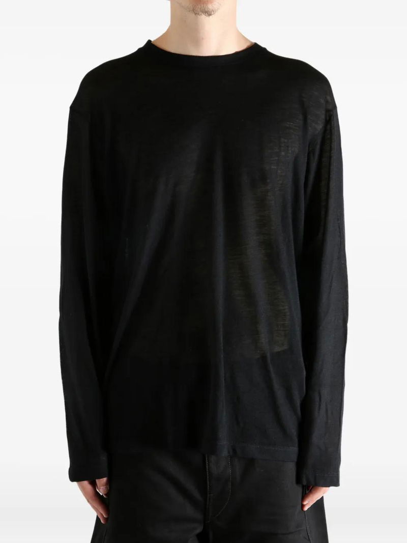 Black long sleeves crew neck straight hem.