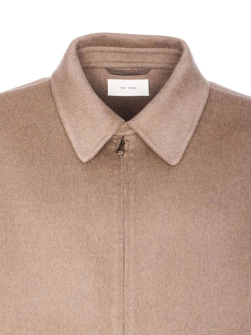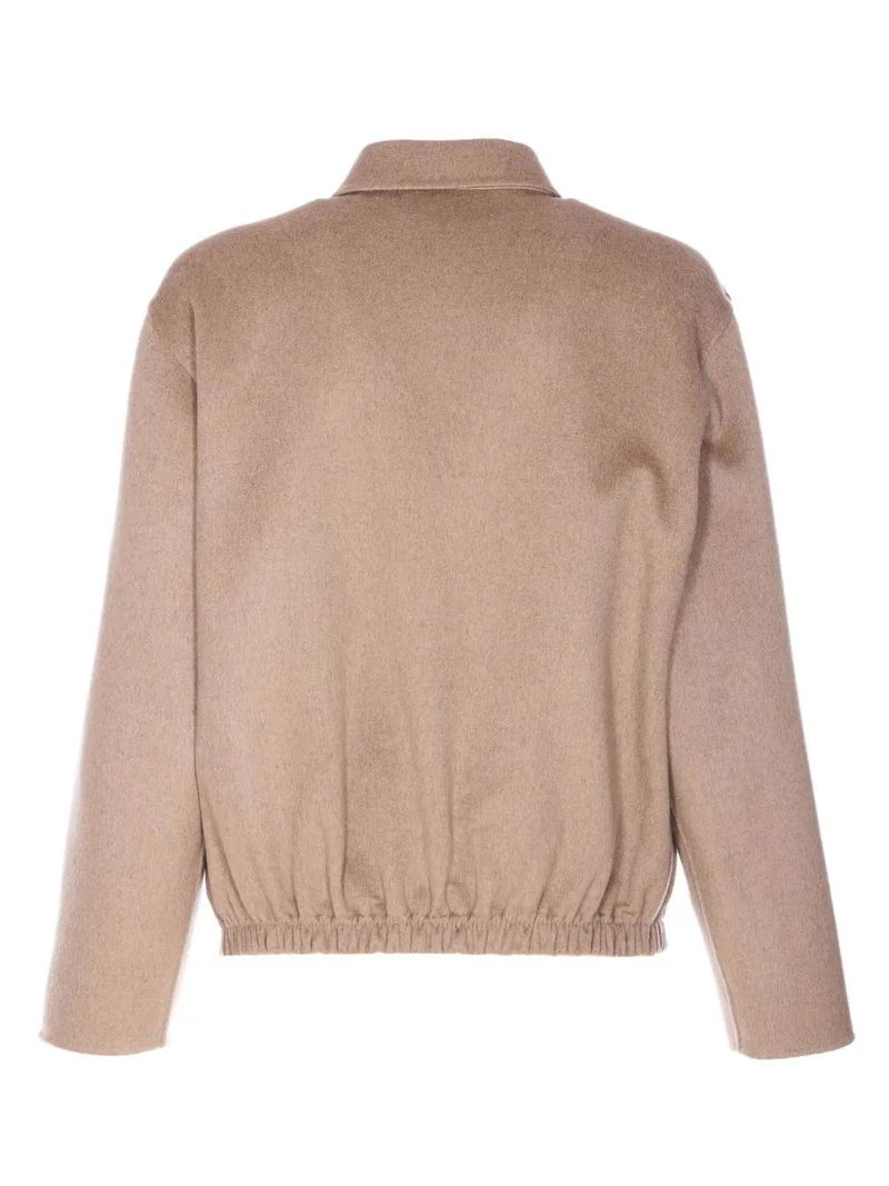 Beige, classic collar, zip closure, lateral pockets, long sleeves, elasticated hem.