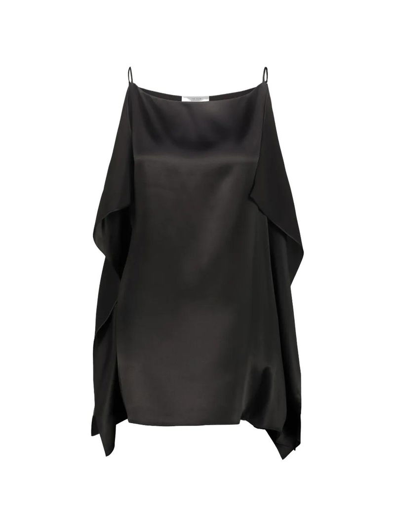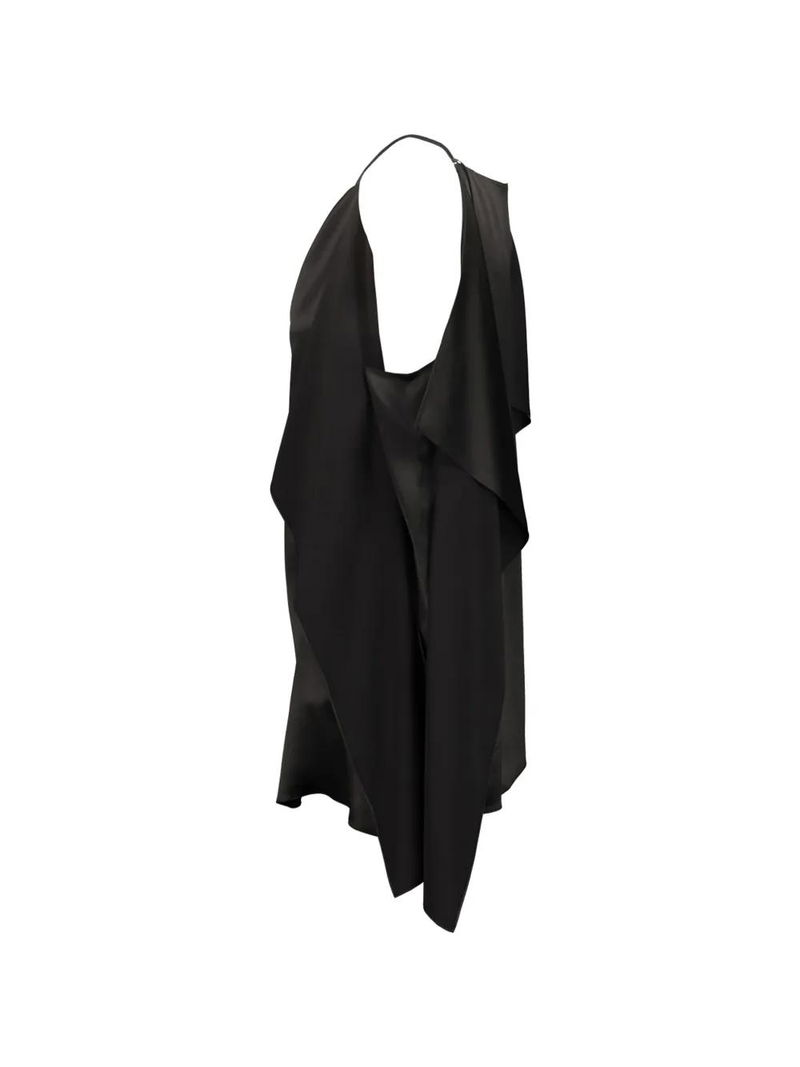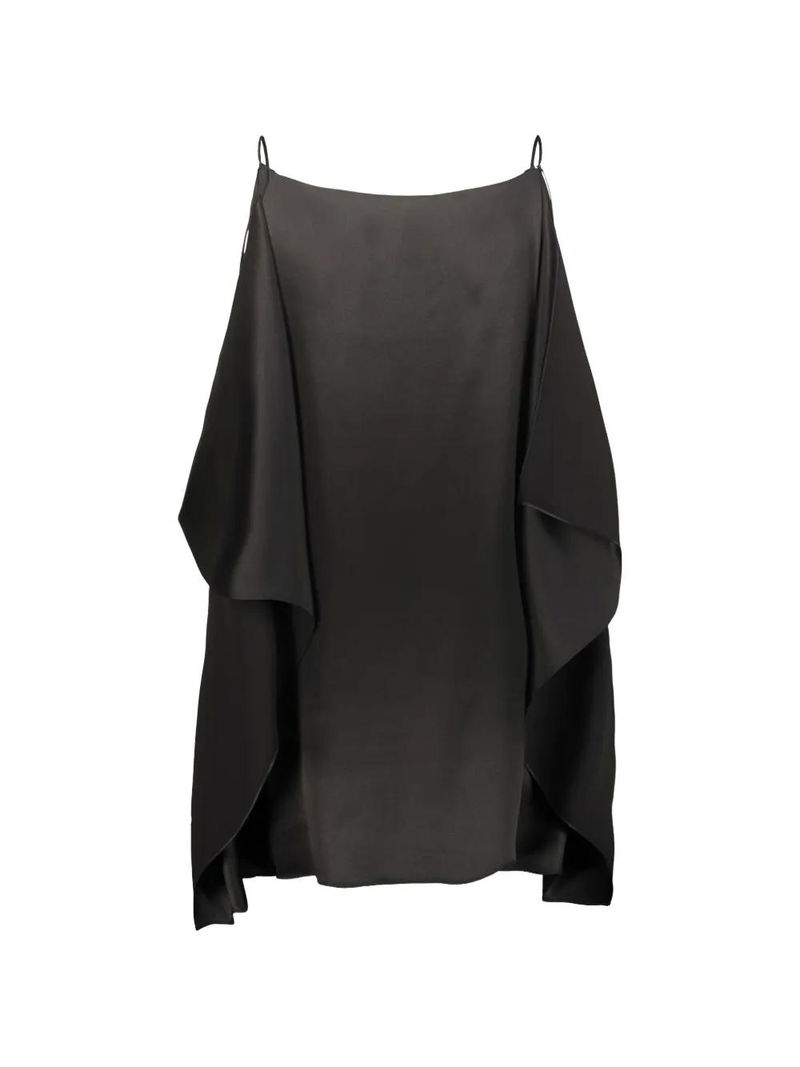 Black silk draped design spaghetti straps.