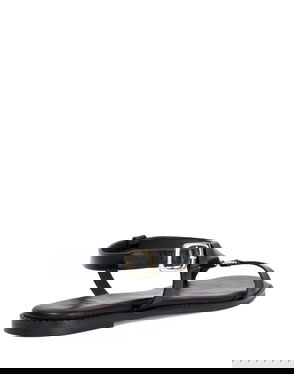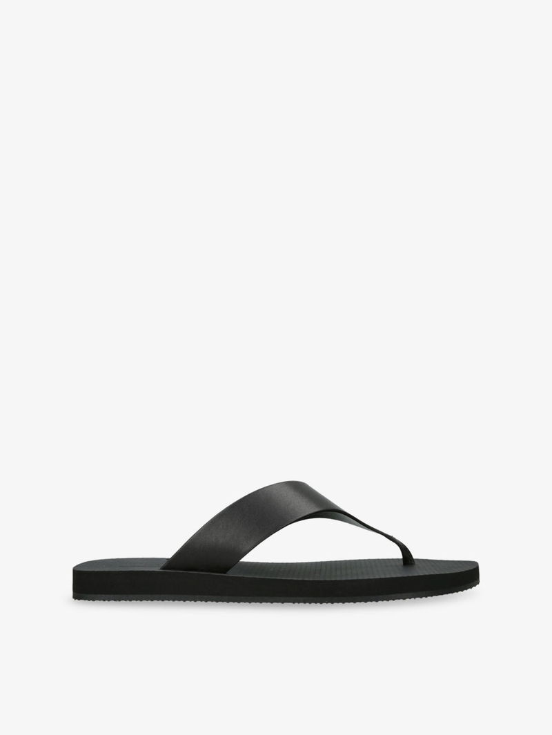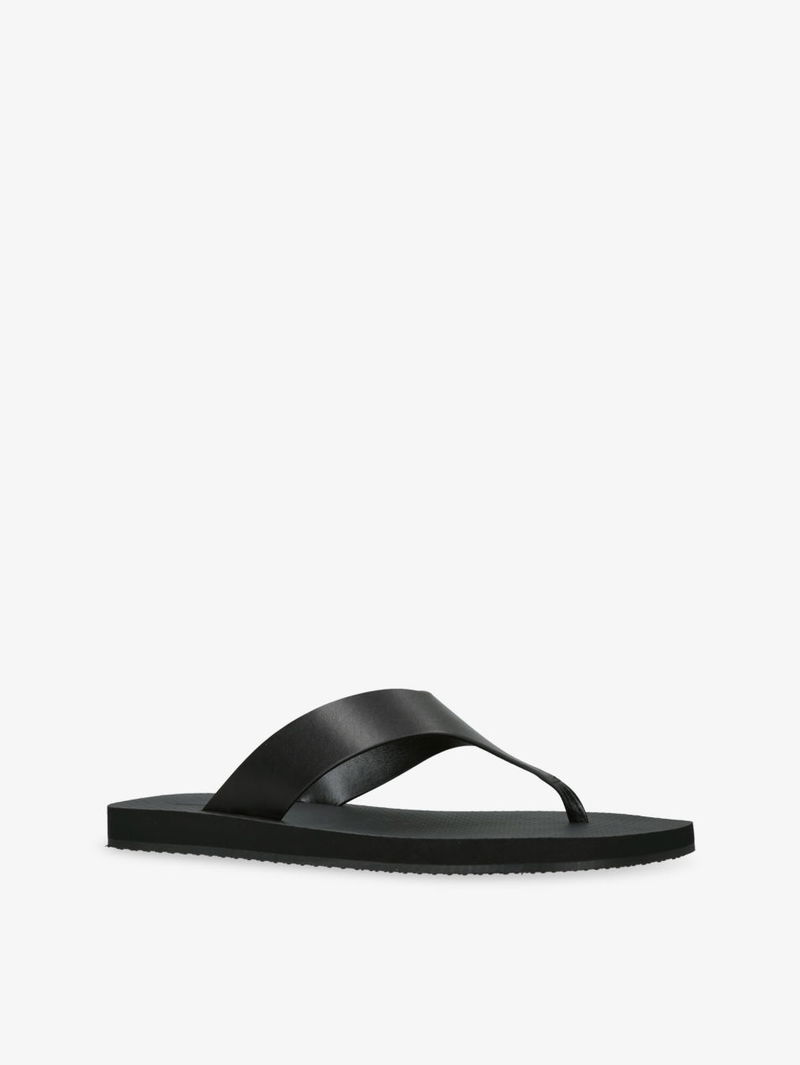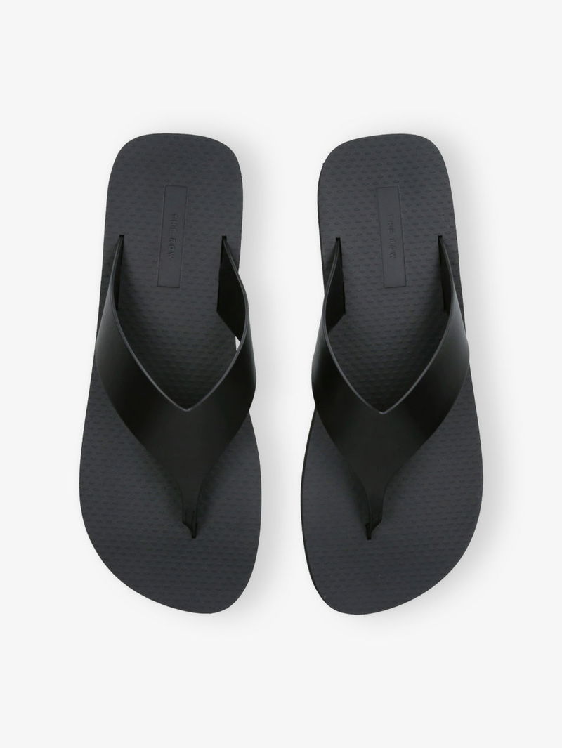 The Row leather sandals. Round toe, toe post, seamless contoured strap, textured footbed.