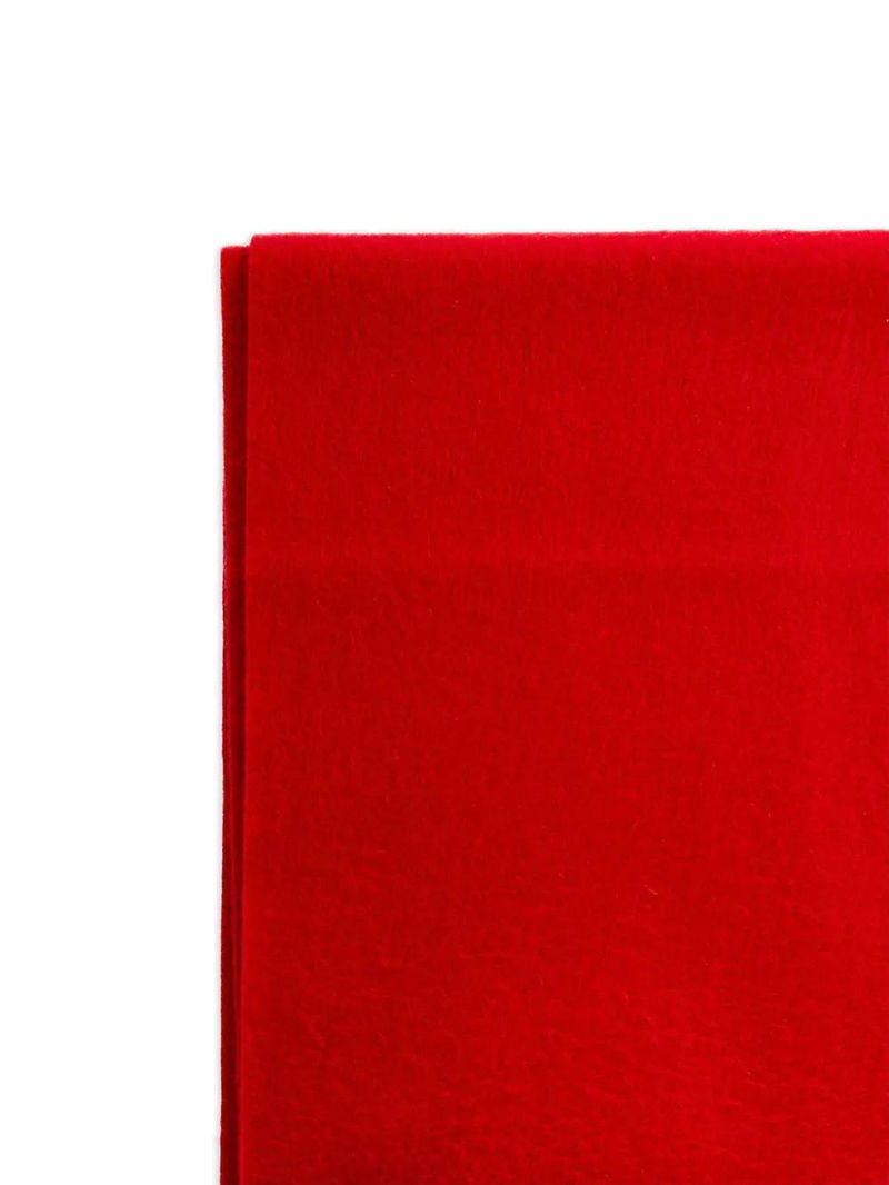 Red wool fringed edges rectangular shape plain soft texture.
