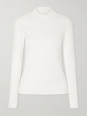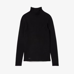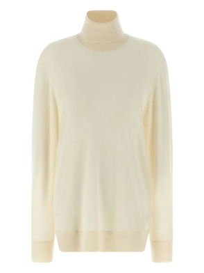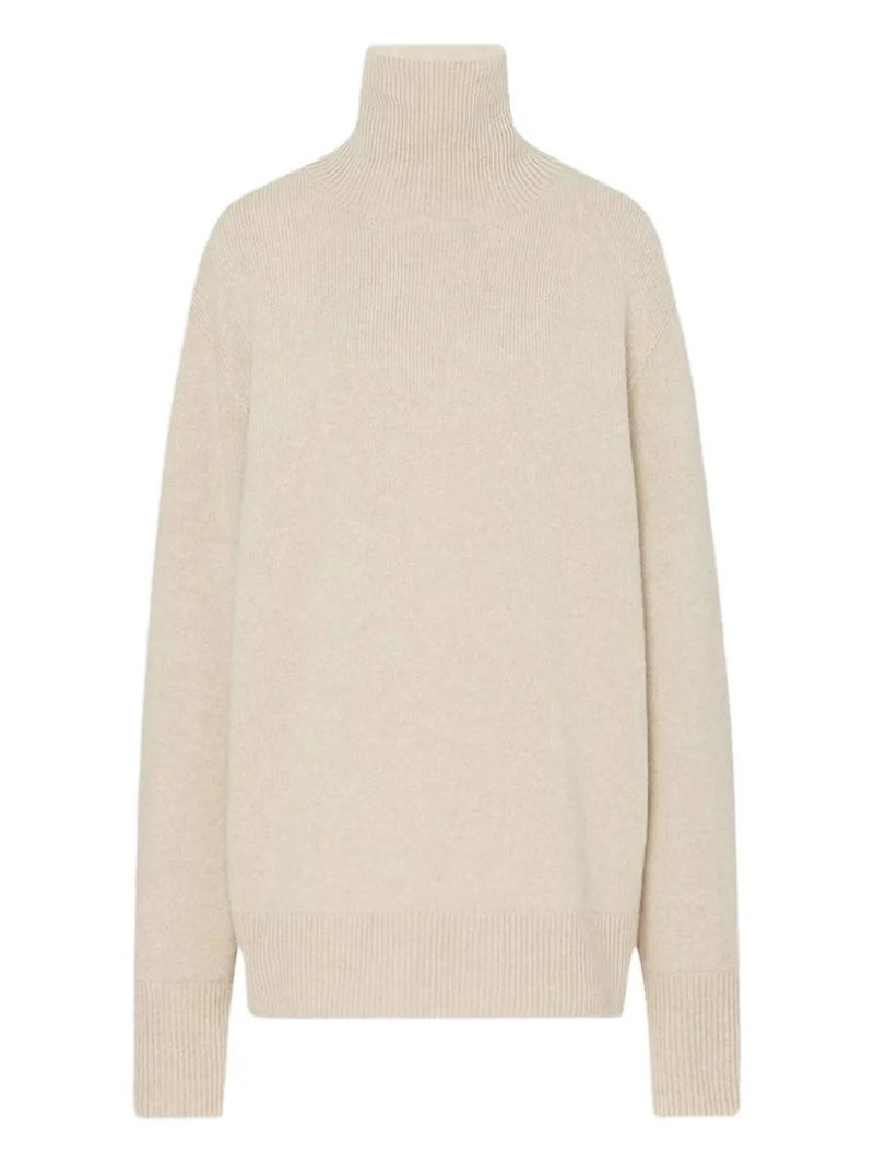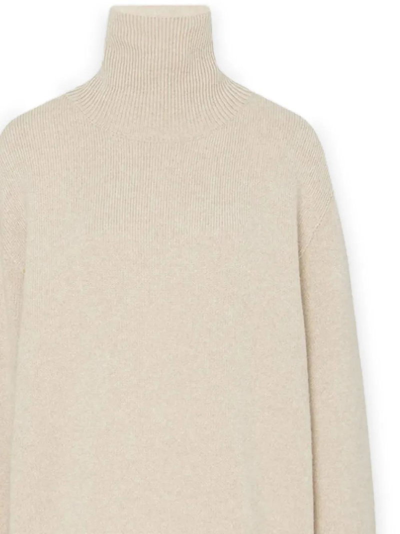 Beige high neck long sleeves ribbed cuffs wool-cashmere blend.