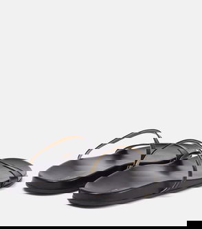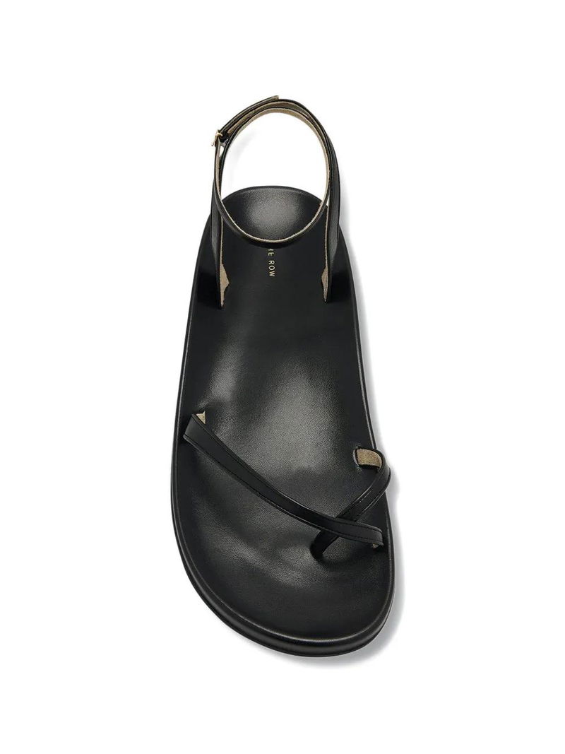 Black toe-strap ankle-strap buckle-fastening flat sole.