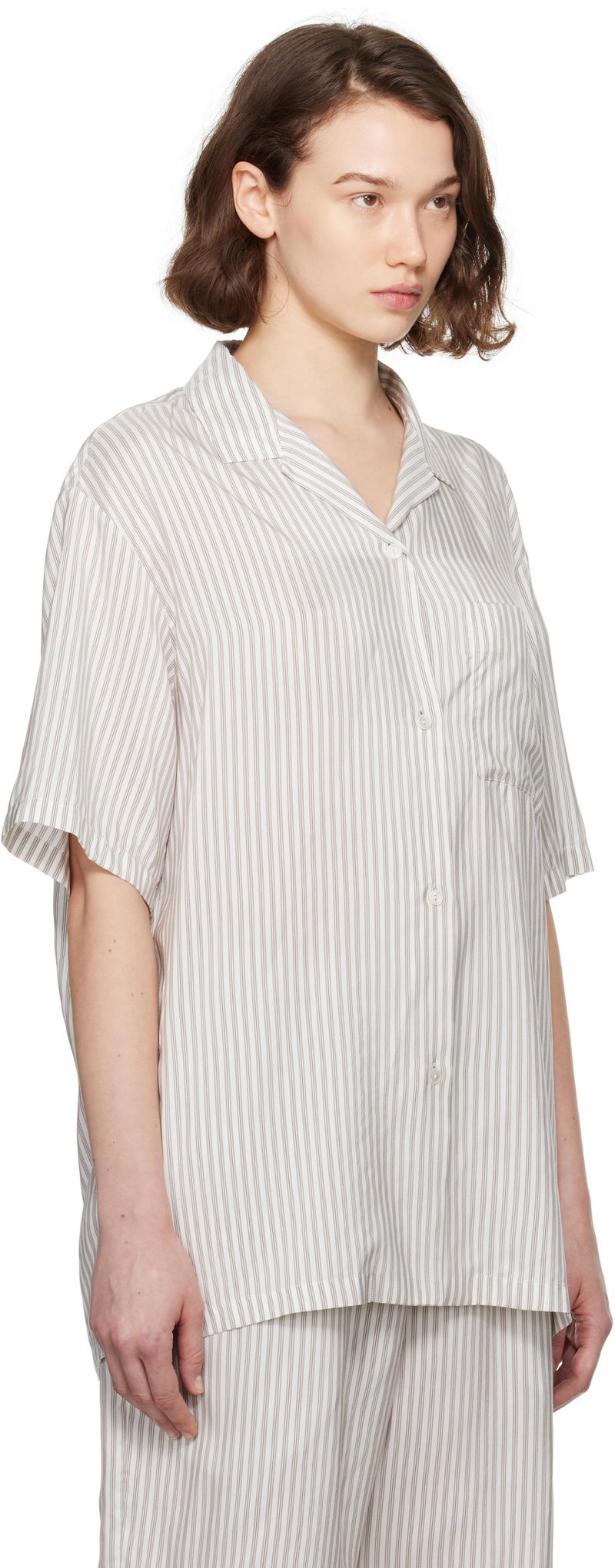 Plain-woven silk shirt. Stripes throughout. Open spread collar. Button closure. Patch pocket at chest. Dropped shoulders. Twin pleats at back yoke.