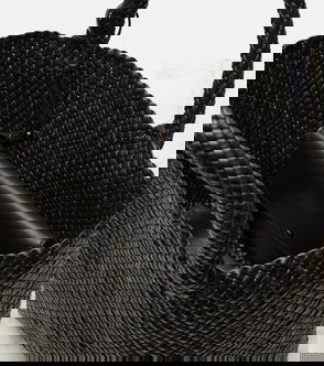Beige woven design top handle This piece comes complete with a protective dust bag.