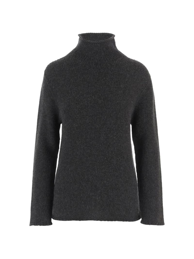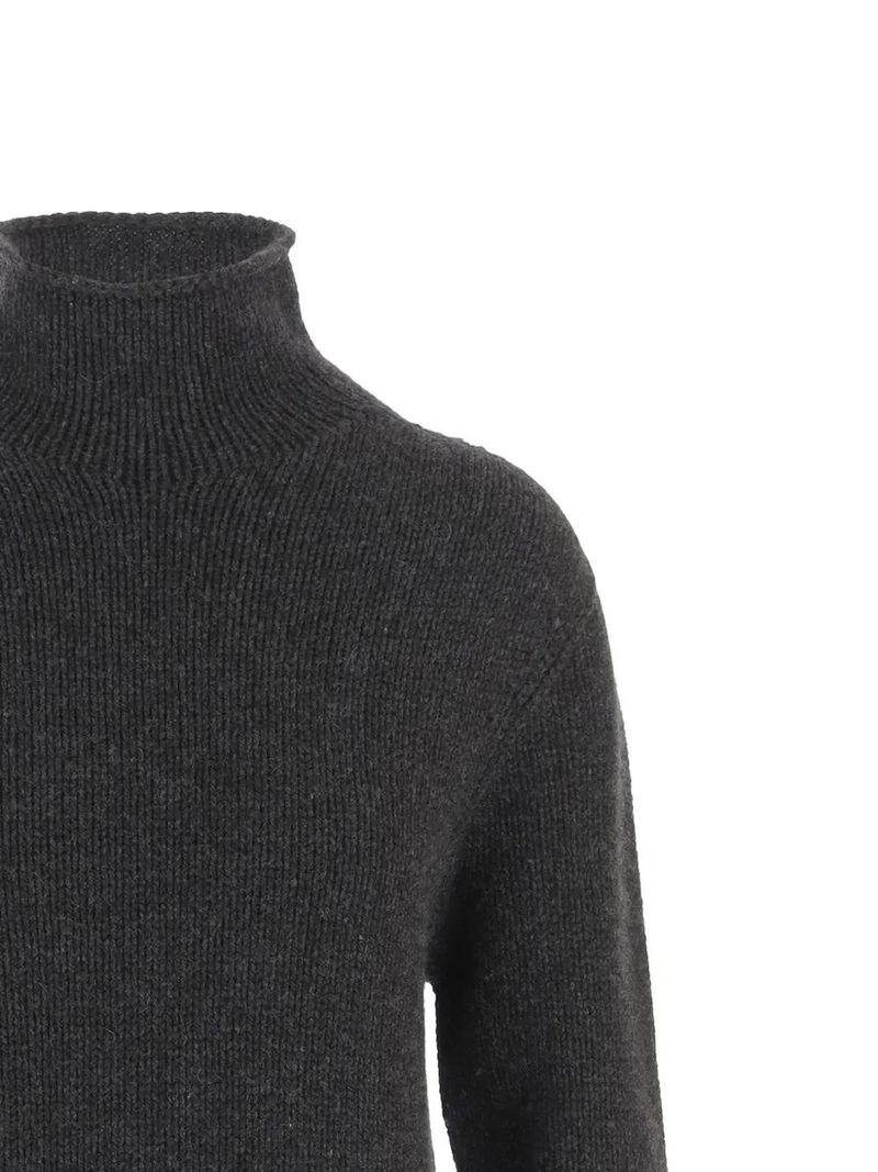 Charcoal grey high neck long sleeves ribbed knit cashmere.