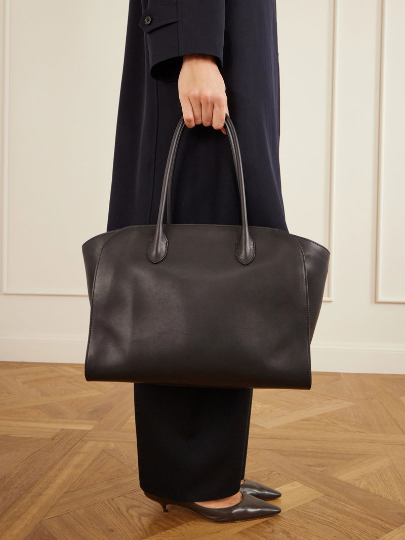 The Row’s ‘Marlo’ tote is modeled on the brand’s iconic ‘Margaux’ style. Made in Italy from black textured leather, it has the same rounded shape with expandable sides and plenty of space inside for your tablet, notebook, wallet and daily essentials.