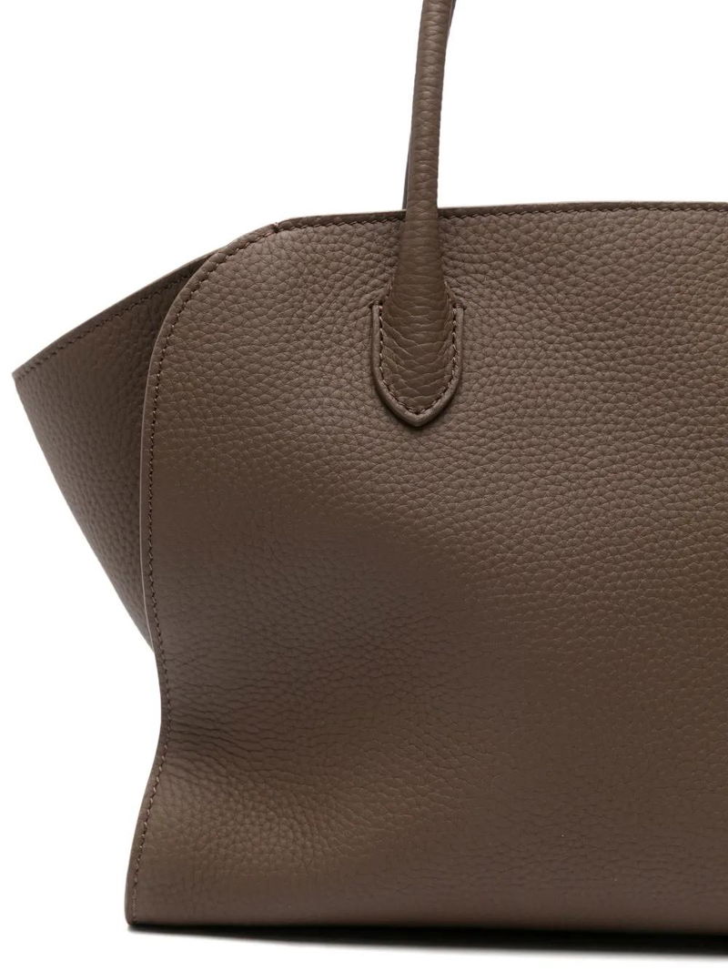 Dark brown top handles curved silhouette zip fastening leather central detail.