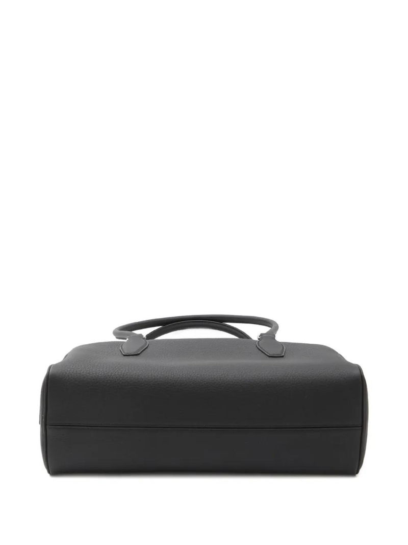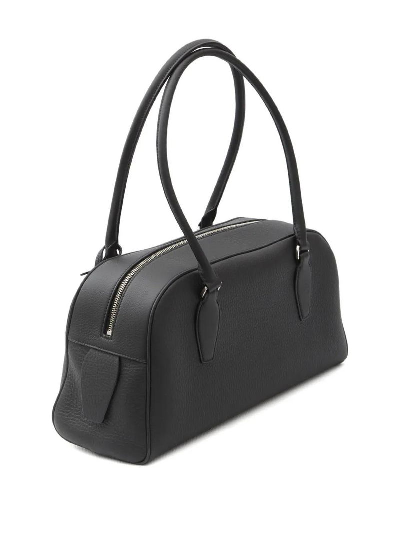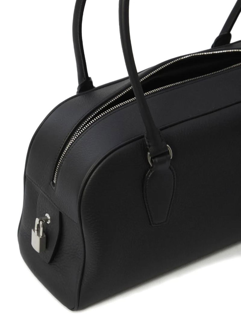 Black calf leather piped edges zip closure.
