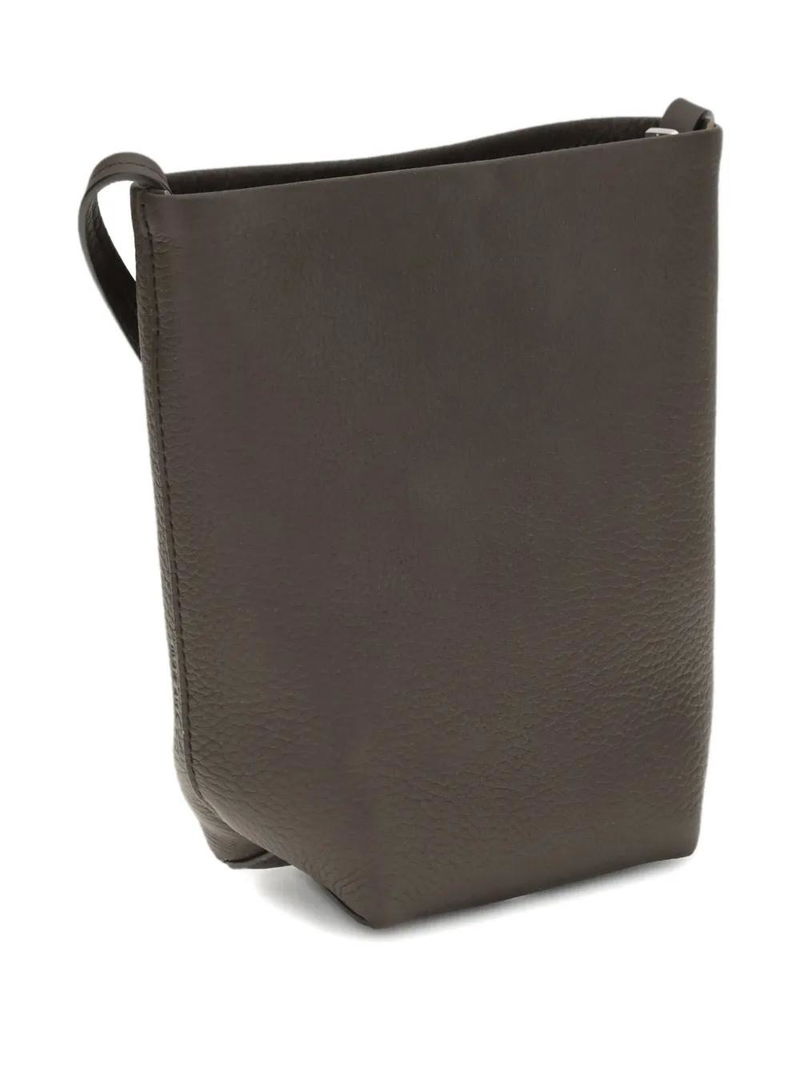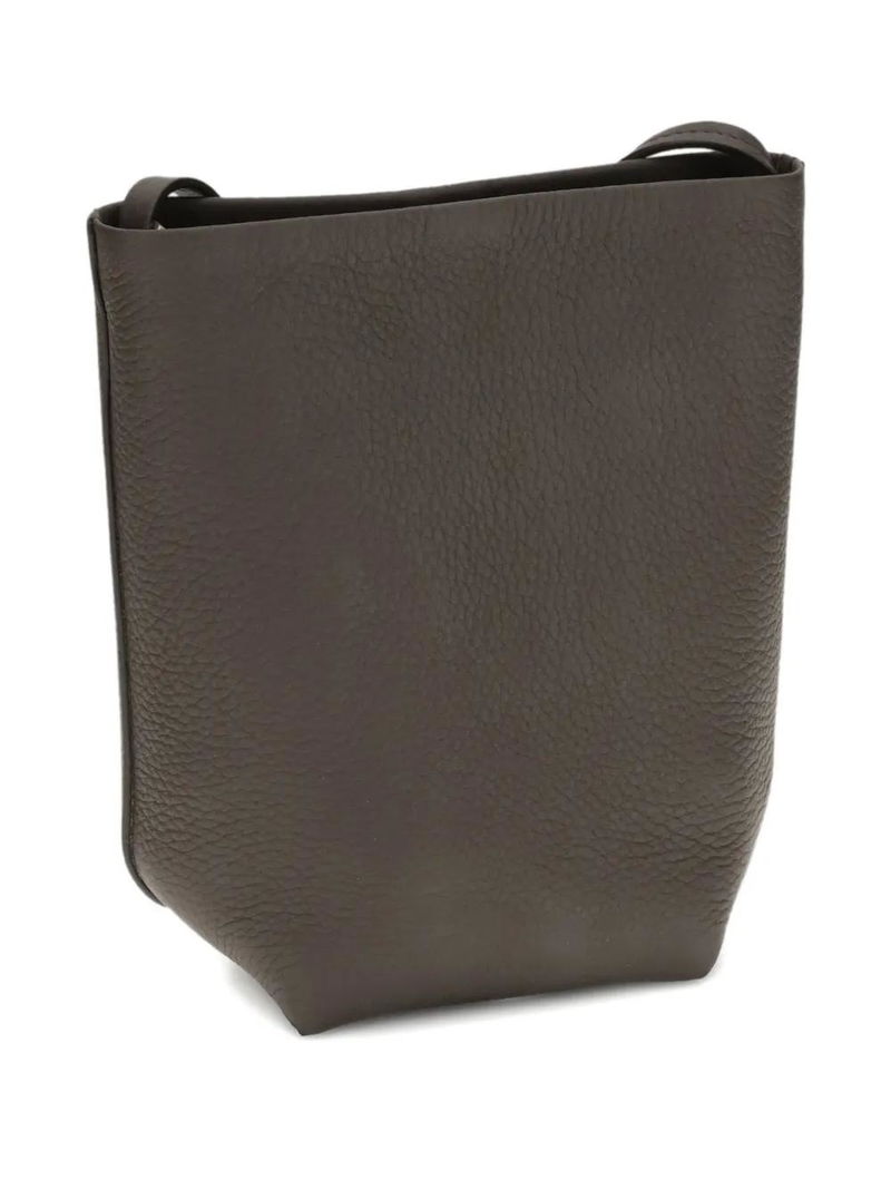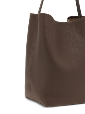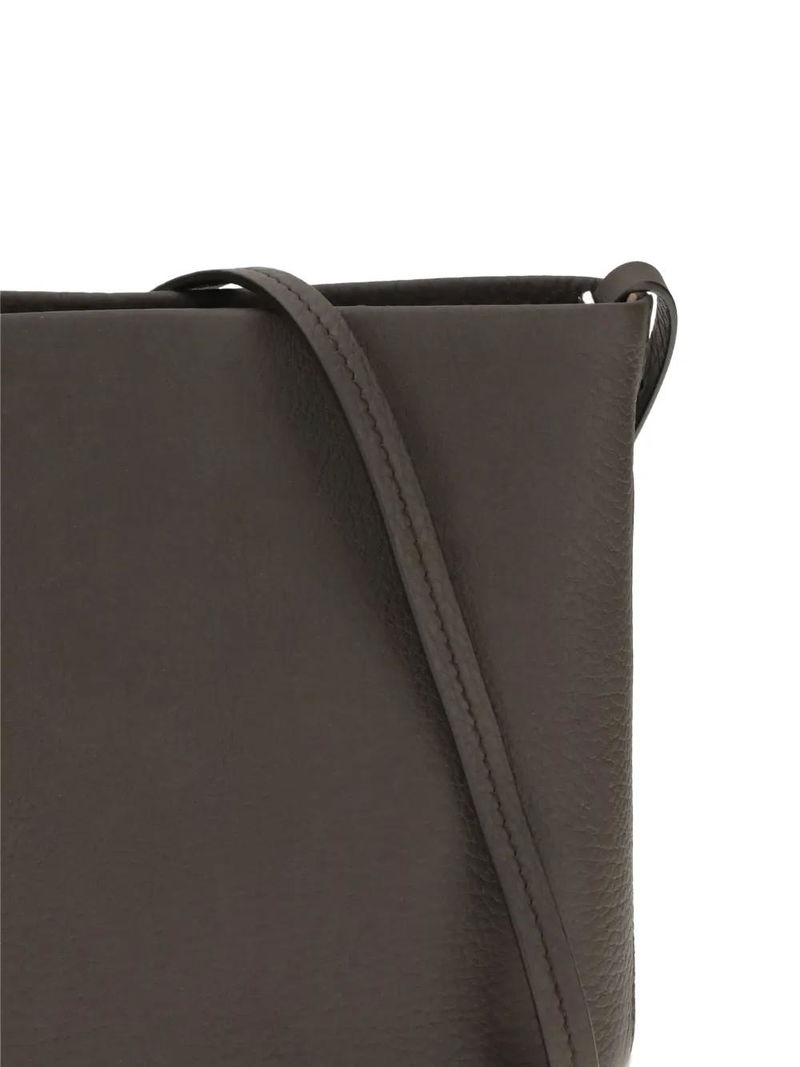 Deep brown single shoulder strap grained leather main compartment.