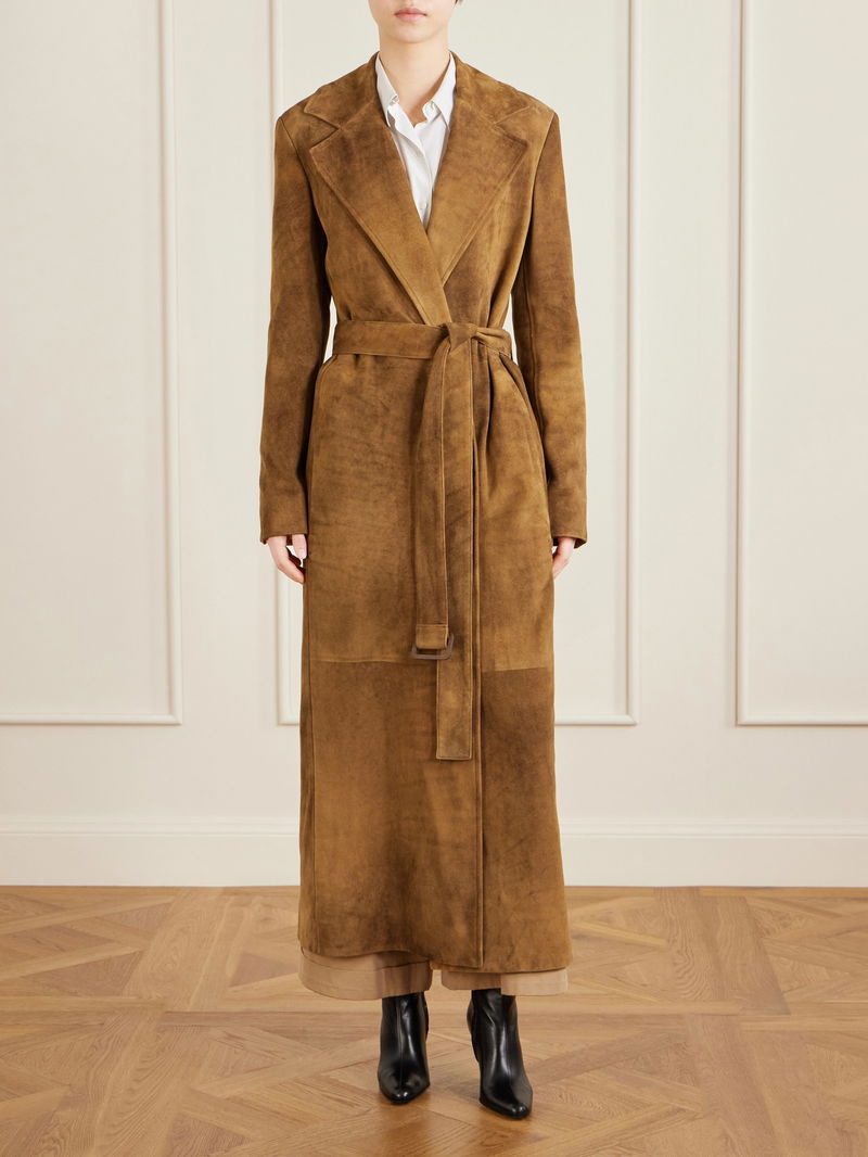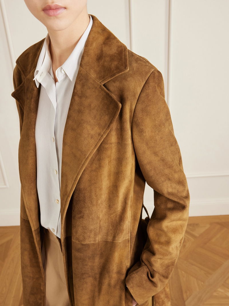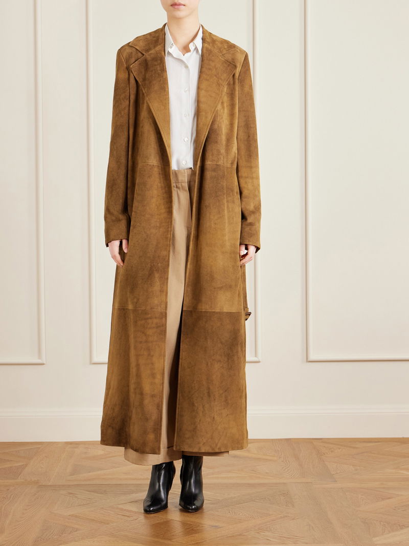 The Row's commitment to achieving the perfect cut is evident in the way this trench coat sits on your shoulders. Tailored in Italy from plush suede, it's fully lined with smooth silk and cinches with a belt. Layer it over loose tailoring.