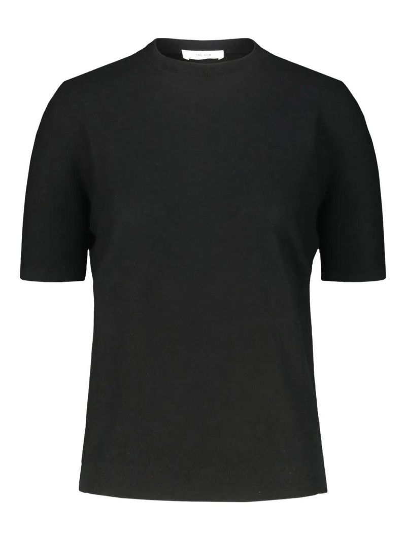 Black round neck short sleeves.