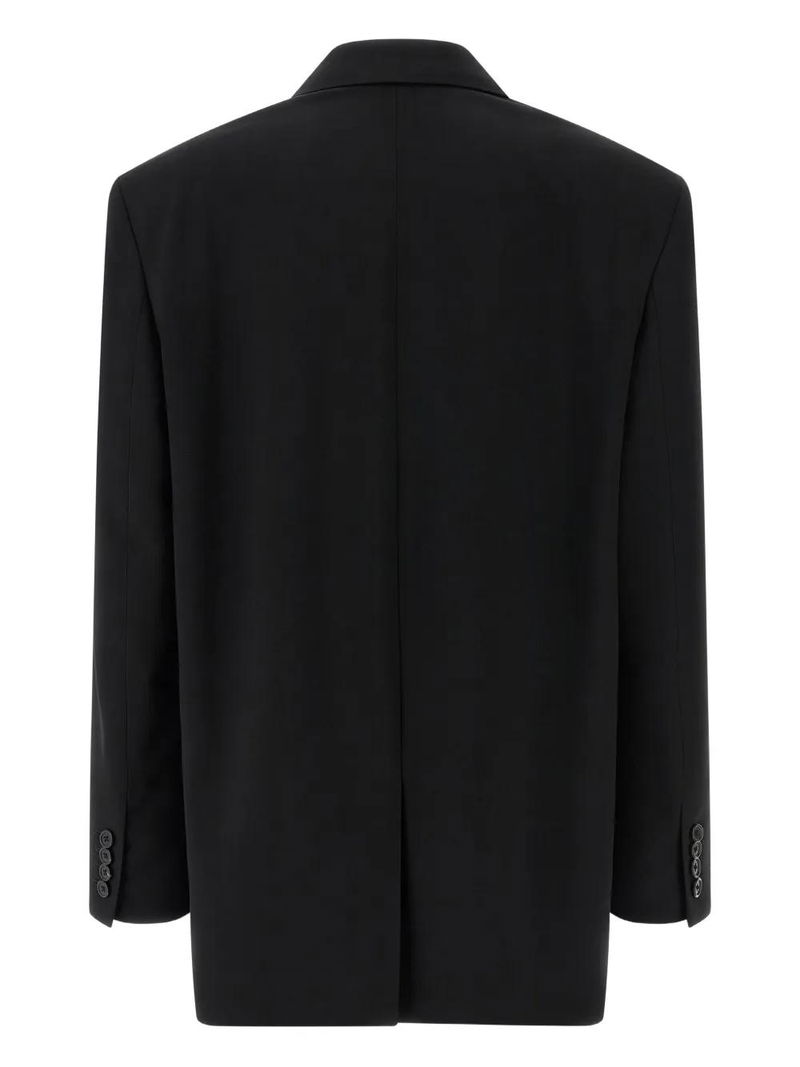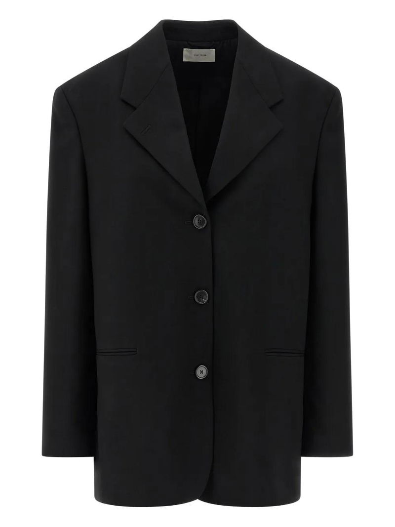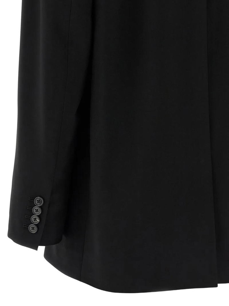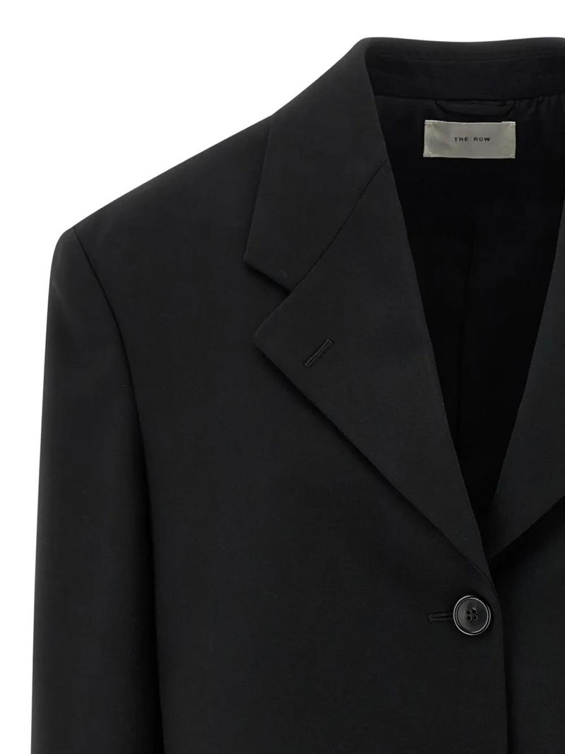 Black single-breasted three-button closure buttoned cuffs.