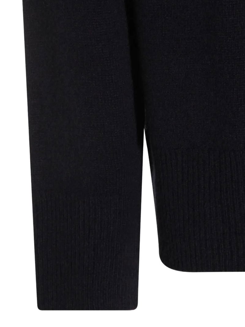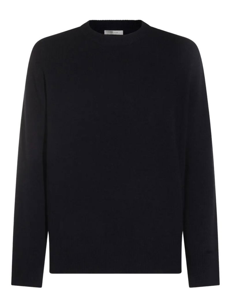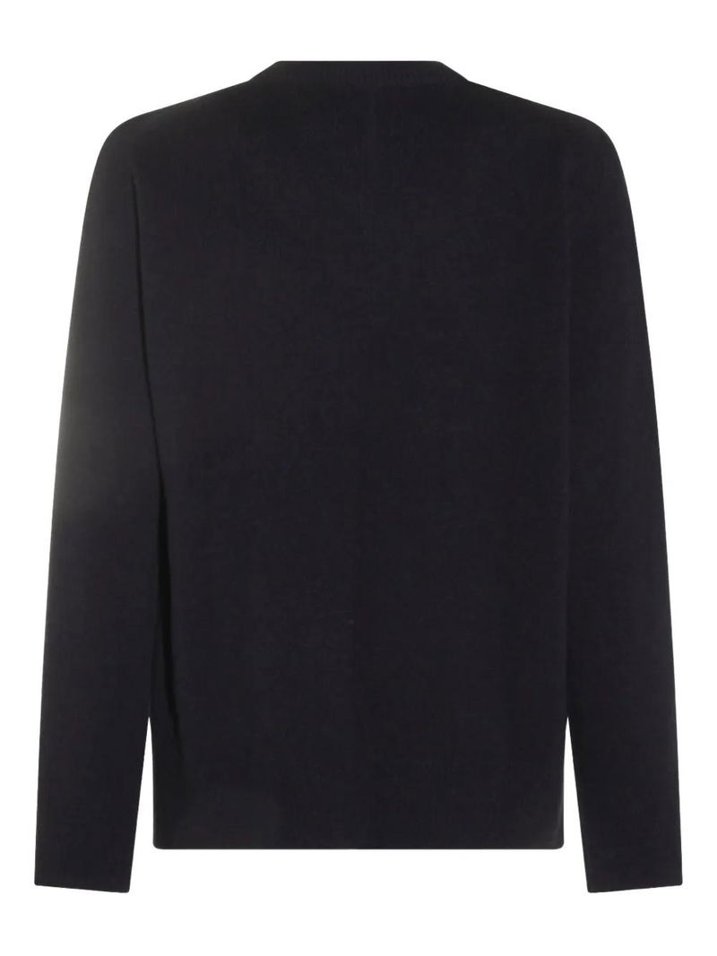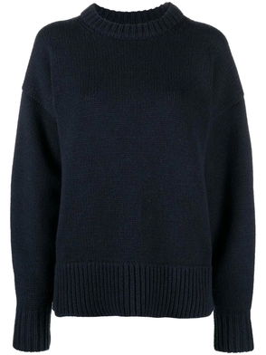 Dark blue wool-blend ribbed texture crew neck long sleeves straight hem.