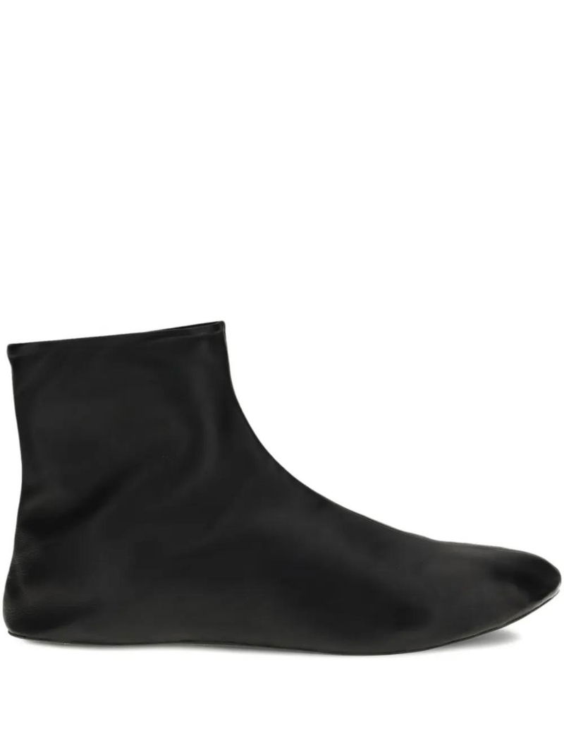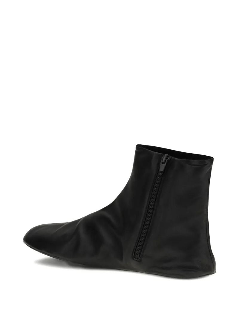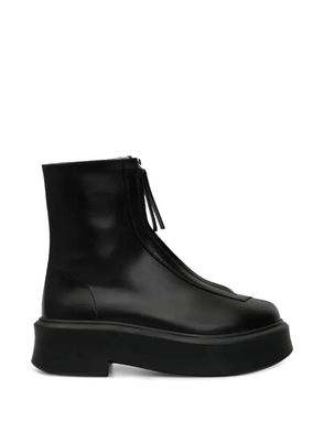 Black, leather, shearling lining, zip fastening, rubber sole, ankle height.