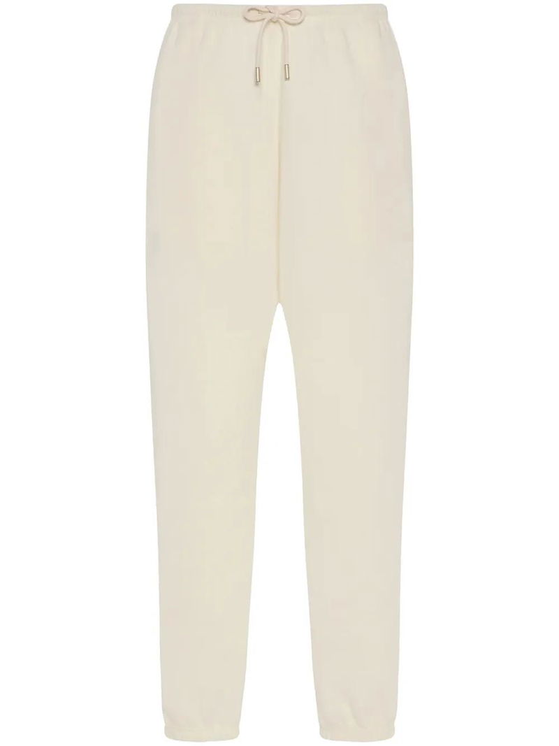 Light beige elasticated drawstring waistband two side slit pockets elasticated ankles.
