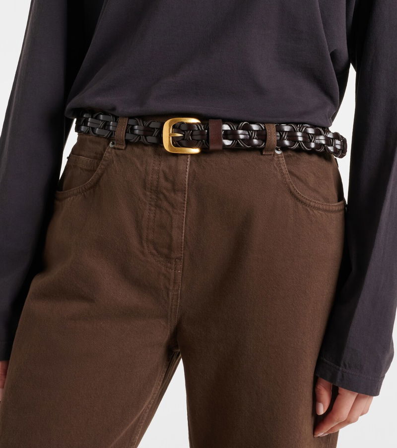 A deep affection for refined and timeless fashion influences The Row's dedication to craftsmanship and quality. This belt is woven in Italy from brown leather and features gold-toned hardware.