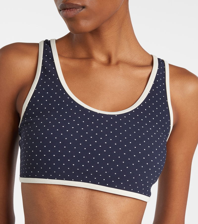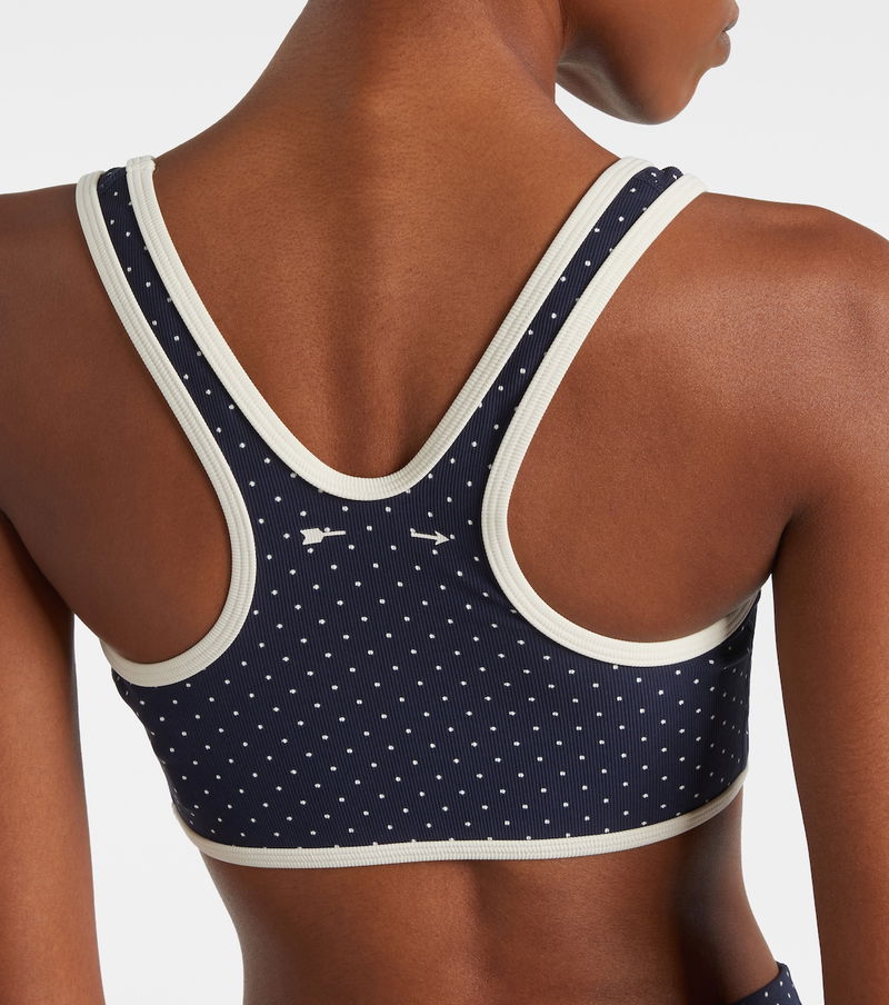With an impressive range of signature technical fabrics, The Upside’s activewear caters to workouts of all intensities. The Spellbound Jade sports bra stands out with all-over polka-dot detailing and contrast piping along the edges.