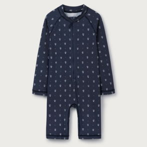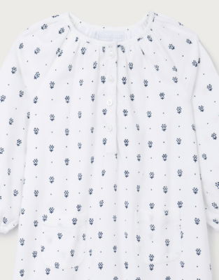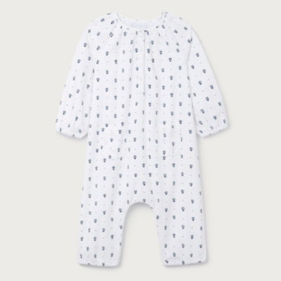 This charming baby girls' jumpsuit is perfect for everyday adventures and playdates. Made from fine needle cord fabric with a white base and navy daisy print it features gathers at the neckline for a sweet shape.