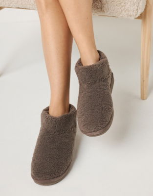 The bootie slippers are theultimate at-home comfort this season. In fuzzy borg (like a faux sheepskin) that's made with recycled fibres they're super comfortable.