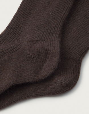 Cosy and comfy. That feeling that comes with putting on a pair of our iconic cashmere bed socks. They have a subtle all-over rib that softly hugs your feet so you'll never want to take them off.