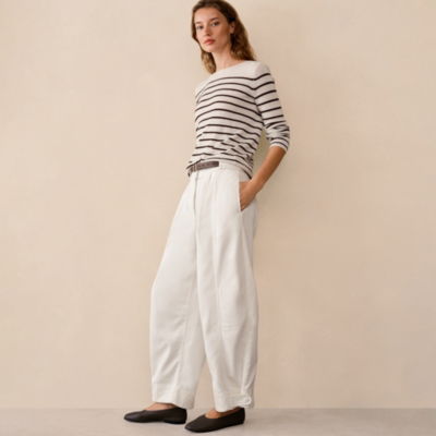 The favourite new statement trousers in a modern balloon shape with plenty of volume and flow through the drop down to a slightly tapered ankle. It has pleats in the front and you'll love how you can adjust the ankle tape to emphasise the volume to the exact level you like.