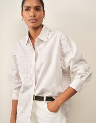 A core piece for a spring wardrobe that will become a year-round staple. Evocative of men's shirt styling with a box pleat on the back and a stepped hem that makes it easy to style untucked tucked in or somewhere between the two. The fabric is a structured pure-cotton poplin to create that classic shirt volume and drape but with a slight crinkle to create an immediate lived-in feel that we just love.